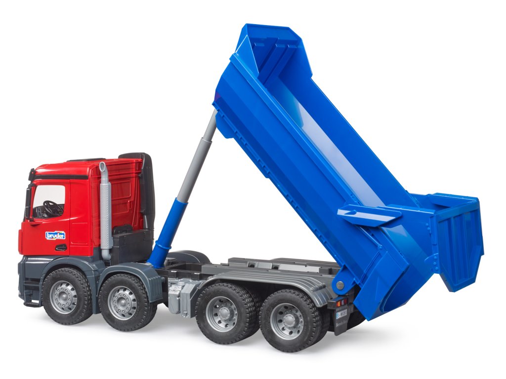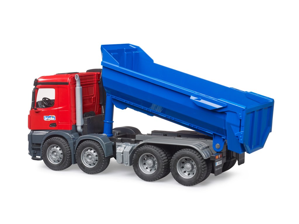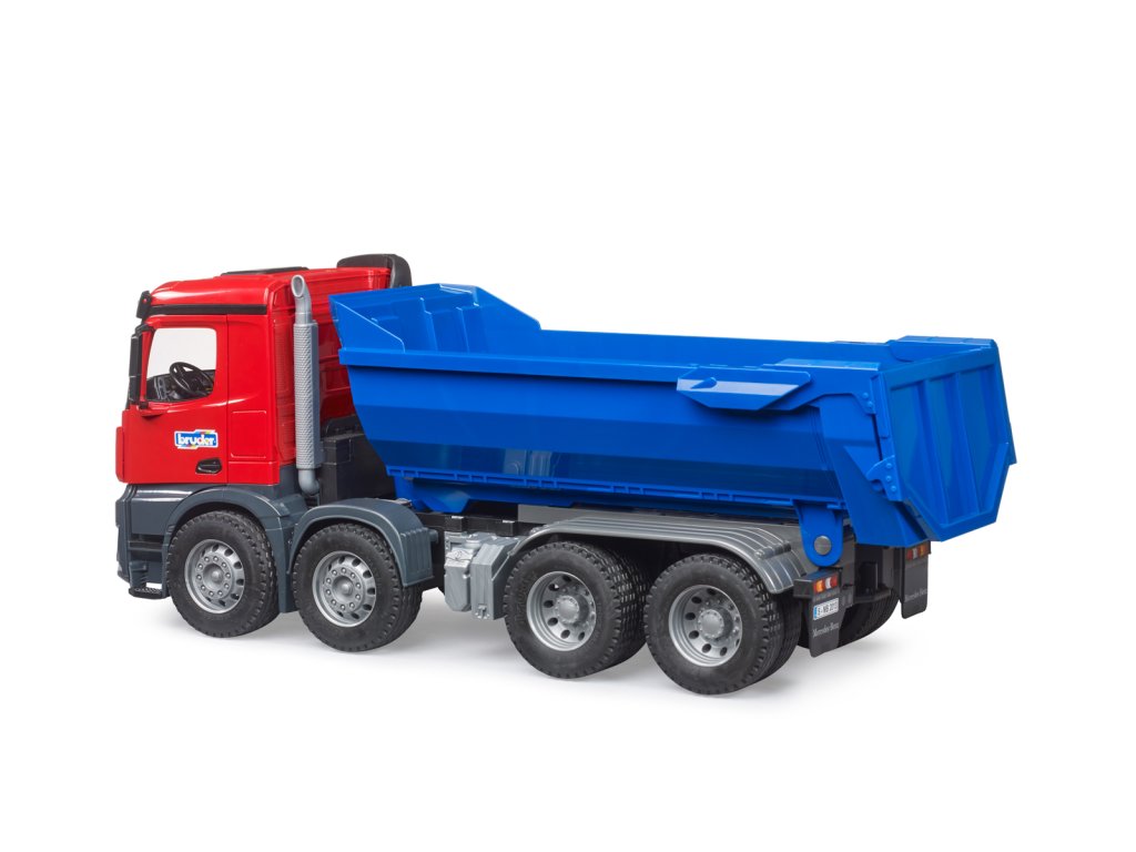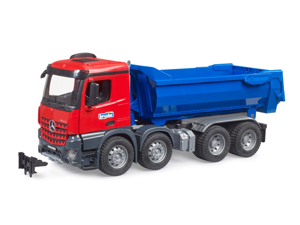 Výkon, robustnost a efektivita jsou často rozhodující při každodenní práci na silnicích a na stavbách. Nový Mercedes-Benz Arocs byl proto speciálně vyvinut pro tyto potřeby. Kromě těchto technických vlastností byl také odpovídajícím způsobem upraven design. Například přední část masky chladiče je navržena v typickém vzhledu Arocs, aby vyjádřila obrovskou sílu. I u tohoto modelu byl kladen velký důraz na robustnost a kabina řidiče byla vybavena otevíratelnými dveřmi. Díky speciálnímu tvaru halfpipe se naložený náklad automaticky umístí doprostřed, což je užitečné jak při jízdě, tak při co nejjednodušší vykládce. Třícestný výsuvný válec karoserie a zadní výklopné dveře lze uzamknout v různých fázích. Rozměry: 19,5x23,5x58cm. Věk: 3+