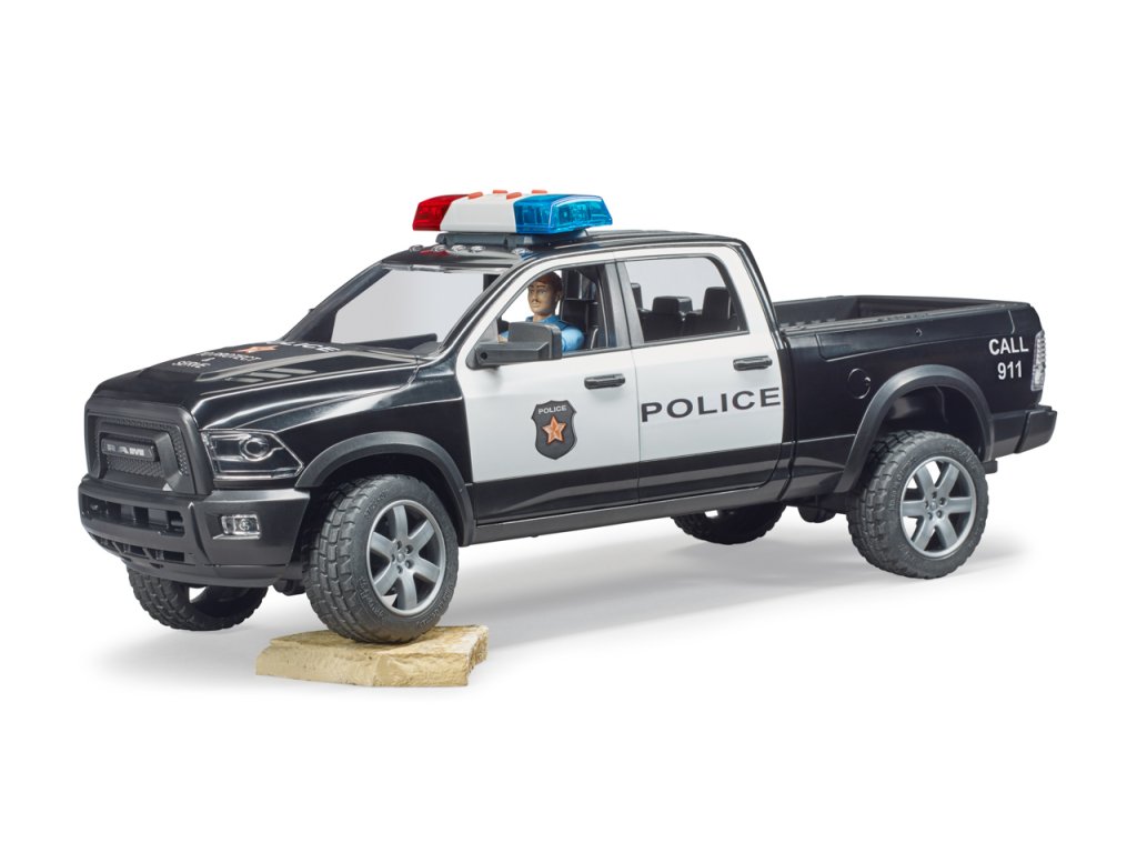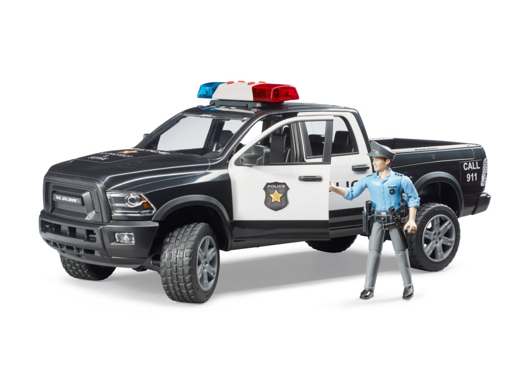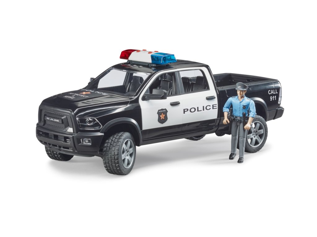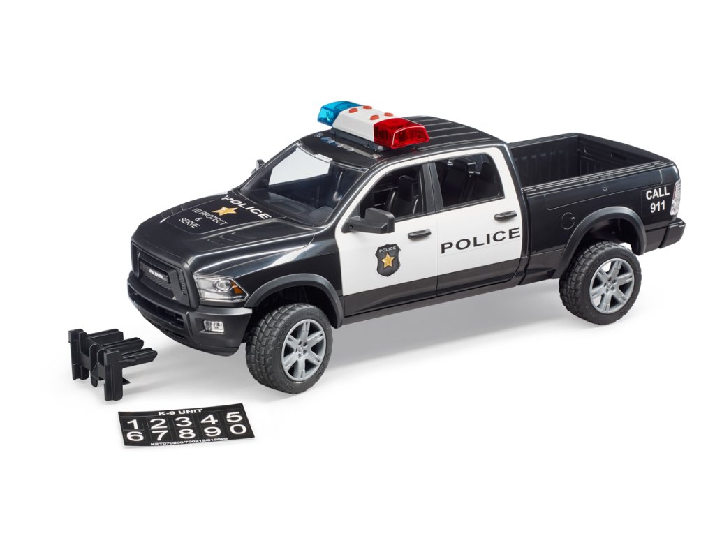 Policie BRUDER dostává posily. K pohotovostním službám BRUDER je přidán policejní pick-up 4x4. Nouzové vozidlo je založeno na známé RAM 2500 a, jak je běžné zejména v USA, má atraktivní, nápadné barevné schéma a Light & Sound Module namontovaný na střeše. Hračka je stejně jako její velký vzor vybavena čtyřdveřovou kabinou CREW Cab. Všechny dveře jsou otevíratelné a nabízejí místo pro 4 postavy ze světa bworld (prodejné samostatně). Pro pohodlí při jízdě a pro jízdu v terénu je tento model 1:16 vybaven odpruženými nápravami, díky kterým lze přední nápravu řídit s přiloženým prodloužením volantu. Dveře zavazadlového prostoru lze otevřít. Auto má čiré skleněné světlomety vpředu. Okna jsou vyrobena z průhledného vysoce kvalitního plastu. Policista (figurka je součástí balení) je dobře vybaven a připraven na různé akce. Měřítko: 1:16. Rozměr balení: 17,5 x 19,5 x 50,5 cm. Doporučený věk: 4+. Nevhodné pro děti mladší 3 let.