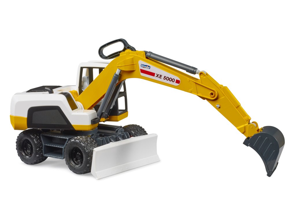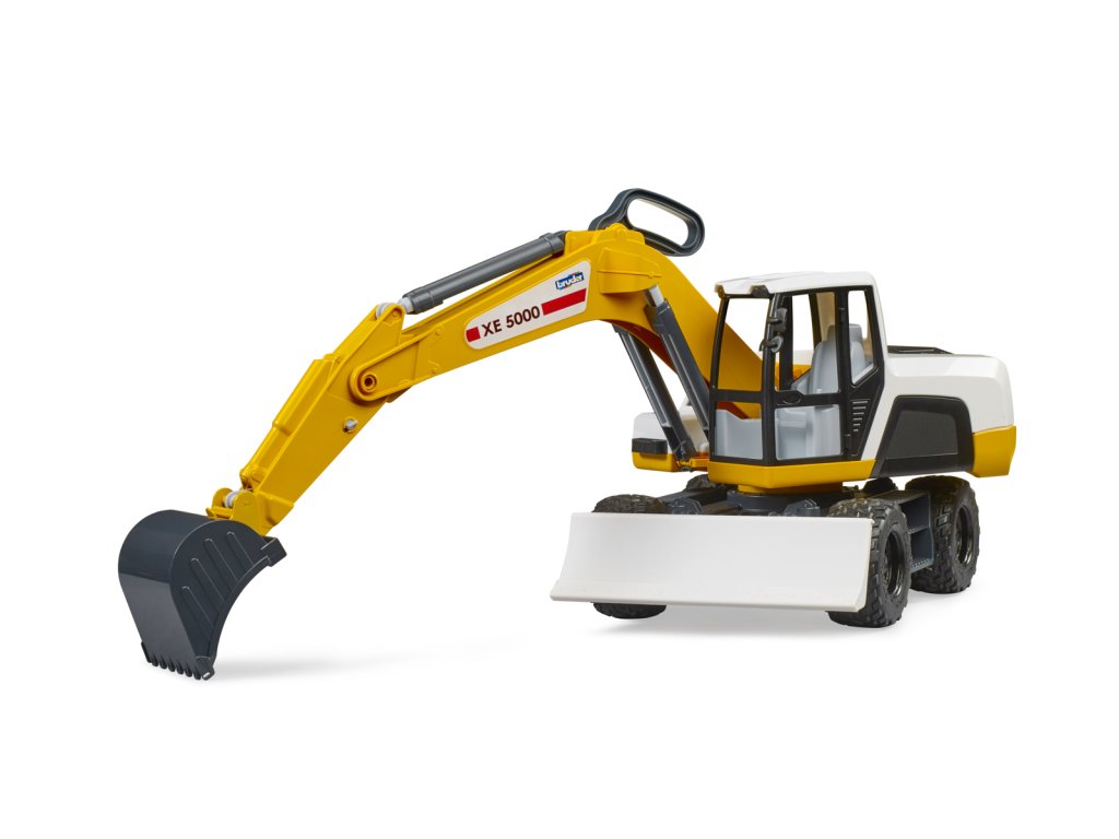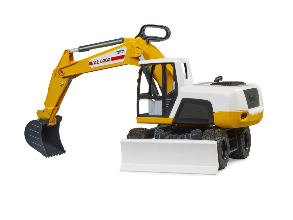 Tématický svět stavebních vozidel BRUDER je mimořádně oblíbený, protože hračky jsou mimořádně detailní a vybavené rozsáhlými funkcemi. Kolové rypadlo BRUDER je novinkou v tomto úspěšném segmentu. Toto vozidlo v propracovaném designu BRUDER zaujme skvělými funkcemi a snadnou ovladatelností. Celé rameno rypadla lze zvedat a spouštět a lopatou pohybovat pomocí centrální rukojeti. S tímto bagrem je také spousta zábavy na pískovišti. Tělo rypadla je otočné o 360° a velká radlice rypadla je výškově nastavitelná. Balení: 18x27x52cm. Věk: 3+