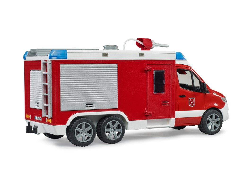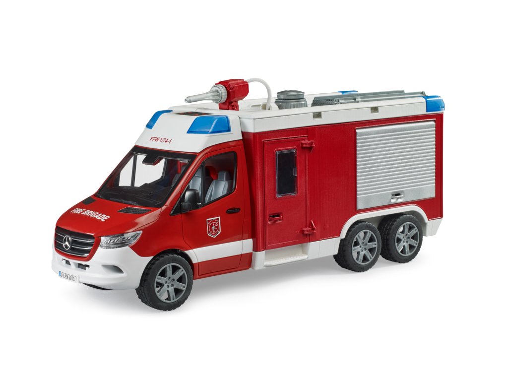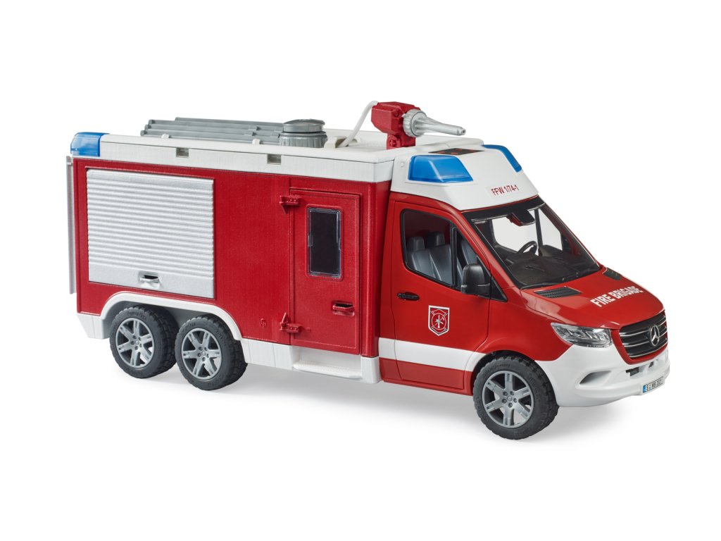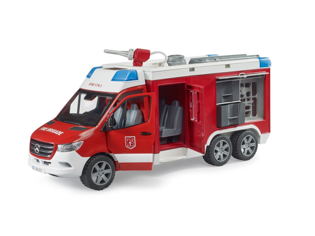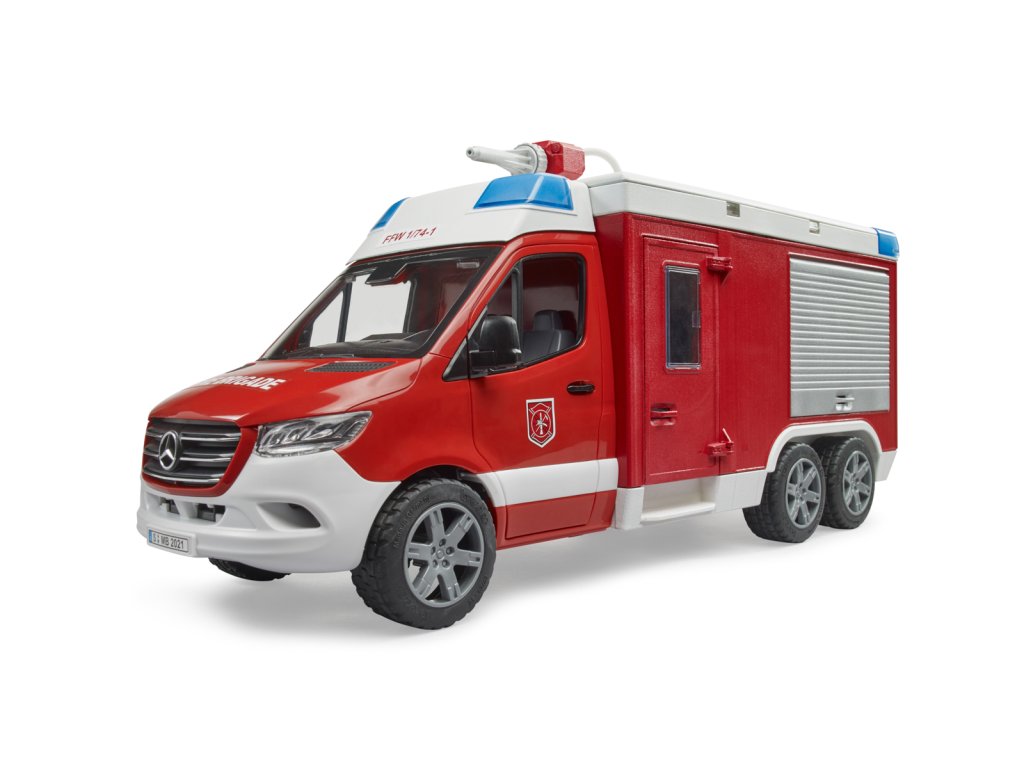 Progresivní, efektivní, spolehlivý – tak Mercedes Benz popisuje nový Sprinter. I v nejnovější generaci zůstává všestranným a všeobecně oblíbeným profesionálním dopravním nástrojem. Nové hasičské záchranné vozidlo BRUDER je skutečně multifunkční zařízení pro záchranné operace. Dvojitá kabina nabízí prostor až pro 4 hasiče. Plně funkční vodní dělo s vodní nádrží a čerpadlem uhasí jakýkoli požár v okamžiku. Kromě toho je k dispozici i druhá hadice pro další hasicí operace. Úložné prostory s dvířky uspořádanými po obou stranách. Součástí je výsuvný hasičský žebřík. Dveře Sprinteru jsou otevíratelné a pro bezpečnost a dobrou viditelnost vozidla je v nich již nainstalován modul se světlem a zvukem. Baterie 3 x LR44 jsou součástí. Kompatibilní s figurkami Bworld. Vyrobené z vysoce kvalitních plastů, jako je ABS. Měřítko 1:16. Lze použít pro hru uvnitř i venku. Rozměry auta: 21 x 16 x 48 cm. Rozměry balení: 23 x 18,9 x 57,2 cm. Věk: 4+