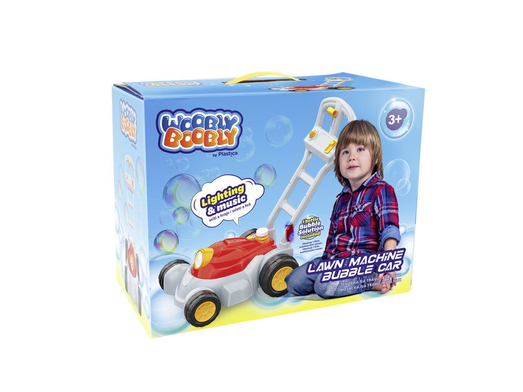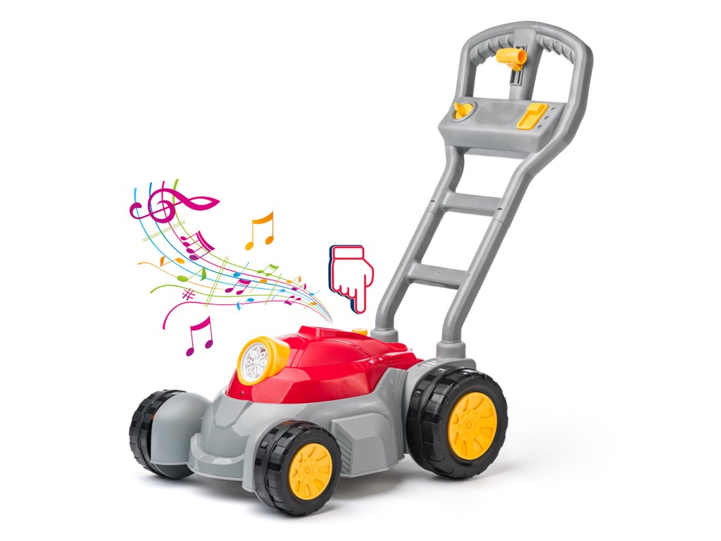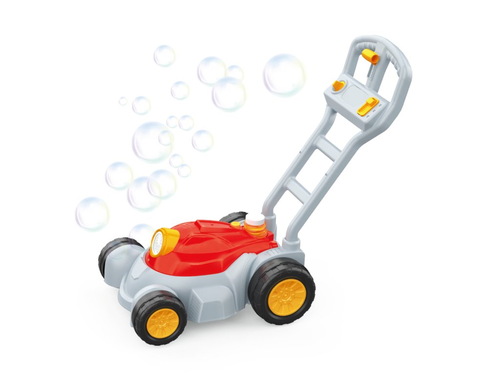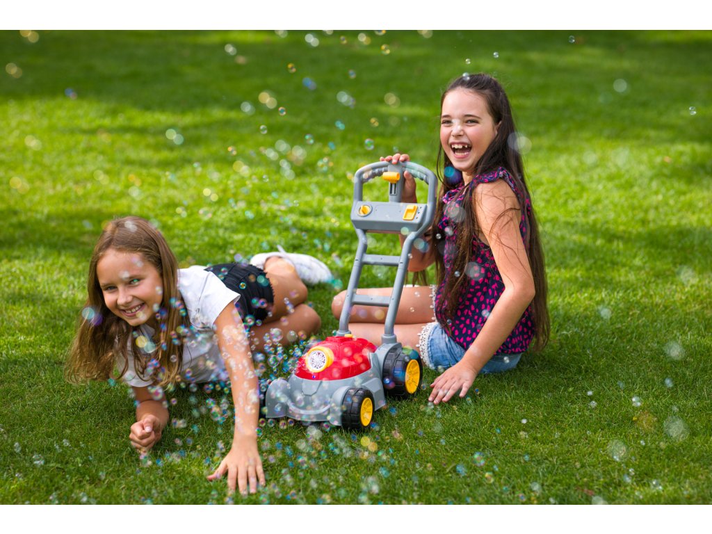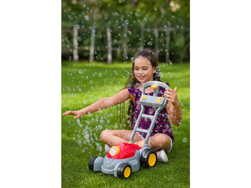 Bublifuková sekačka se světelnými a zvukovými efekty. Našroubujte přiložený roztok bublin do spodní části sekačky a stiskněte tlačítko. Uvidíte množství magických bublin proudících z přední části motorové sekačky. Stiskněte ho podruhé a máte to i s hudebním doprovodem. Hračka je snadno ovladatelná díky pevné plastové rukojeti. Baterie: 3× AA (nejsou součástí balení). Roztok 118 ml do bublifuku je součástí balení. Rozměry sekačky cca: 51 x 25,5 x 67 cm. Rozměry balení: 26,5 x 35 x 18, 5 cm. Věk: 3+