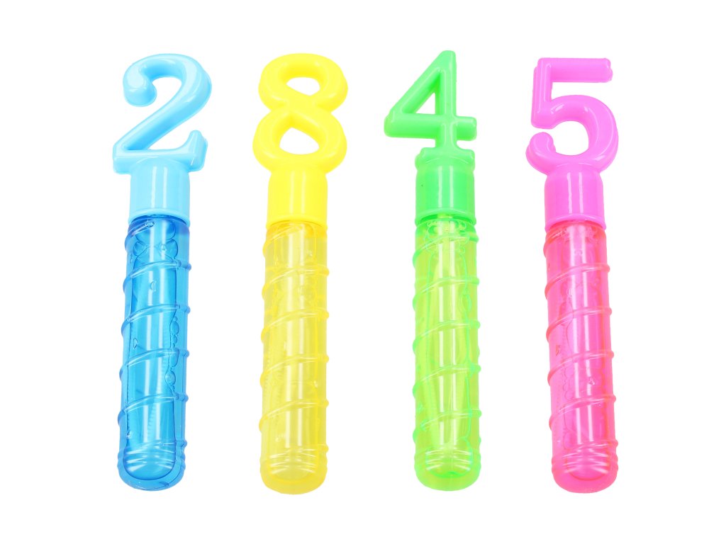 Bublifuk číslice. Objem 30 ml. Velikost 16,5 cm. 24 ks display box. 10 variant - 0 až 9.