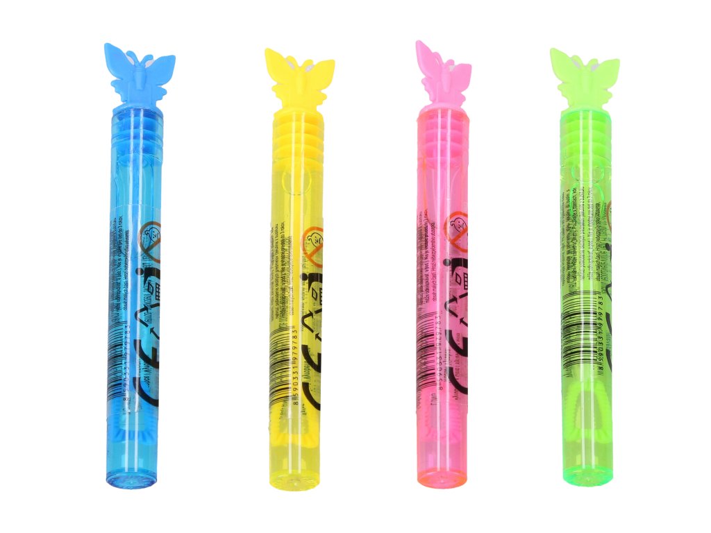 Bublifuk motýl. Velikost 11 cm. 48 ks display box. 4 barevné varianty - růžová, zelená, modrá, fialová.