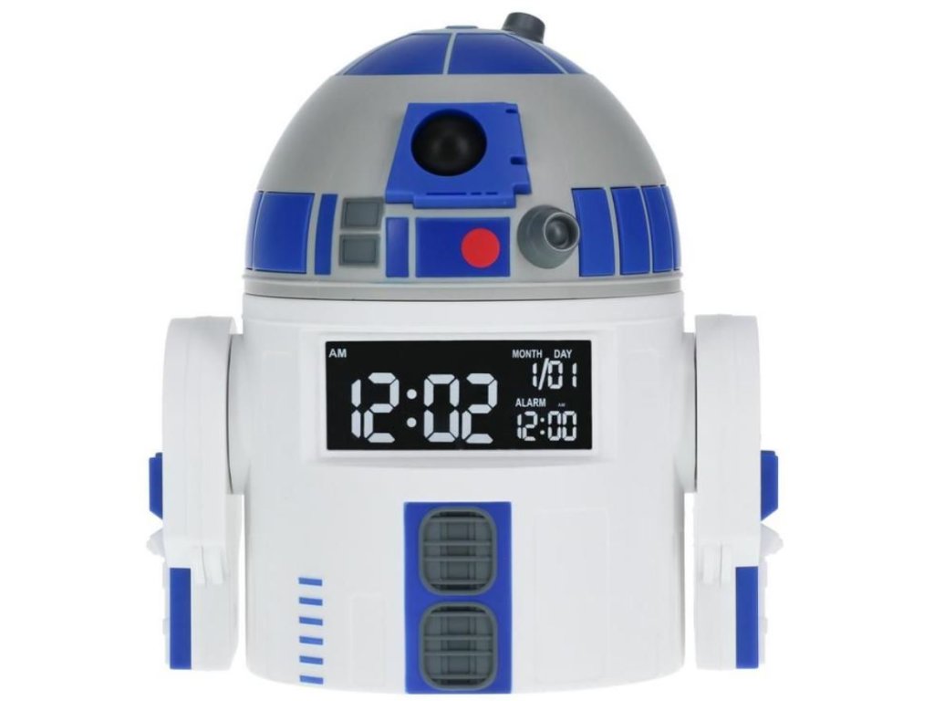 Už nikdy nevstávejte pozdě s tímto budíkem Star Wars. Bílomodrý budík je navržen tak, aby připomínal malého kosmického servisního robota R2-D2. Obsahuje LCD digitální displej. Pomocí D-padu a tlačítek nastavte čas a datum.