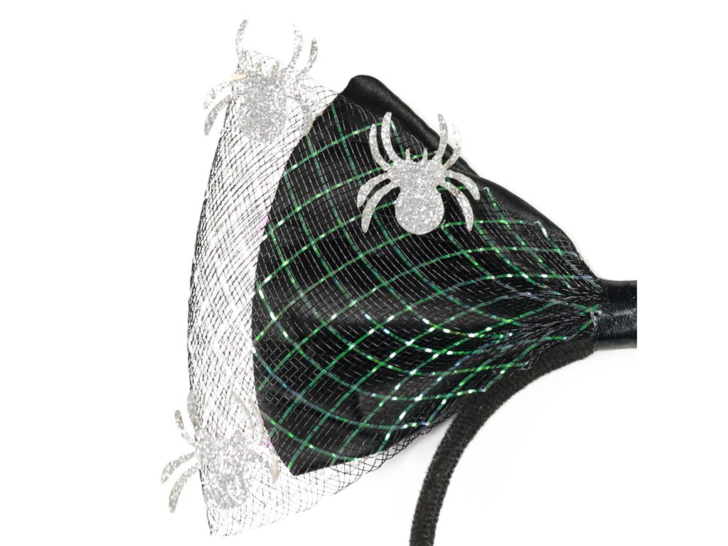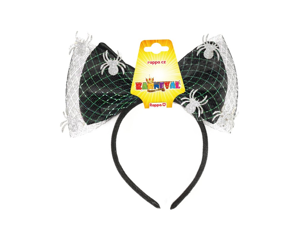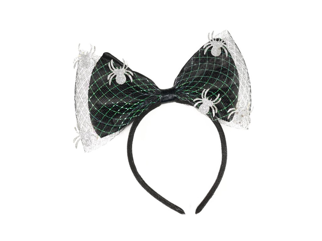 Úžasná čelenka s velkou mašlí a pavoučky je senzačním doplňkem na párty či karneval. Ideální do vlasů při oslavě čarodějnic nebo halloweenu.