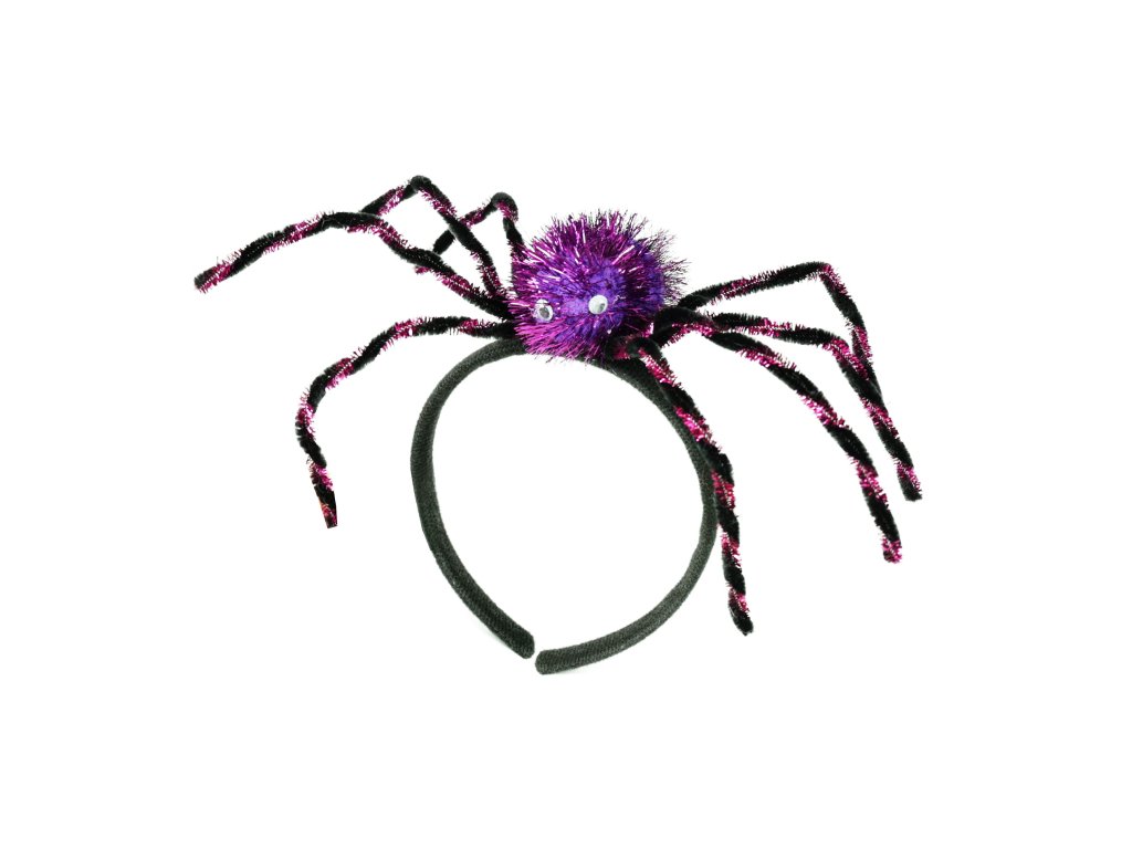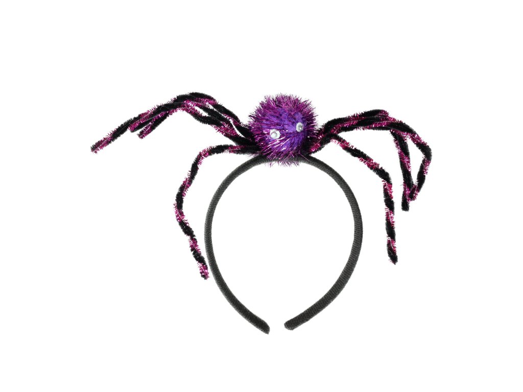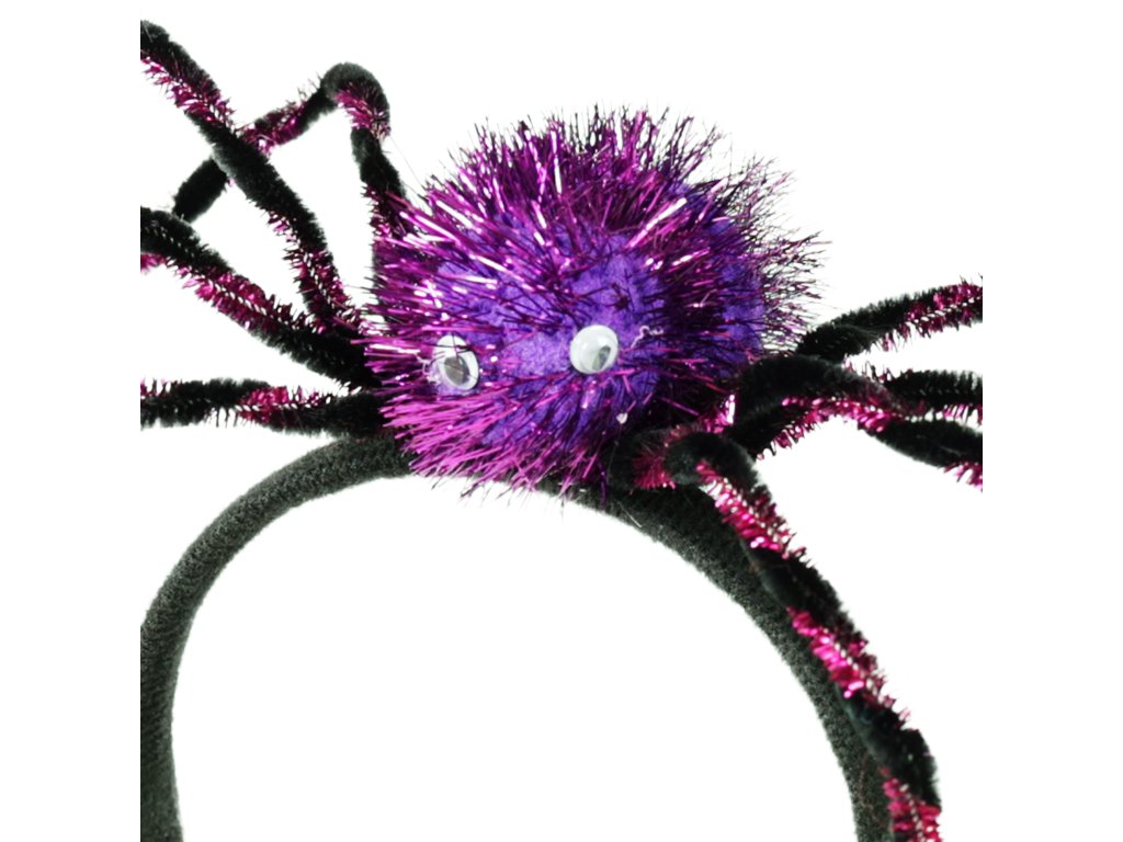 Nepřehlédnutelná čelenka s velkým fialovým pavoukem je senzačním doplňkem na párty či karneval. Ideální doplněk do vlasů při oslavě čarodějnic nebo halloweenu.
