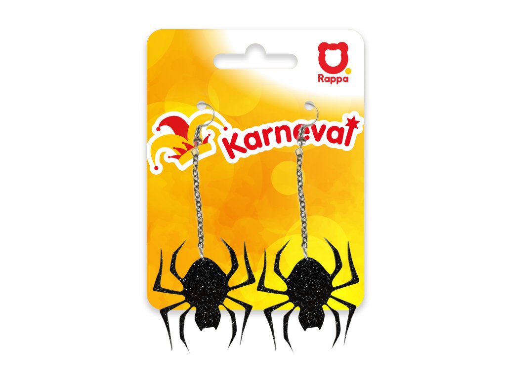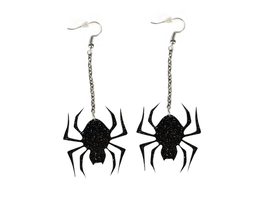 Exkluzivní karnevalové náušnice, díky kterým se staneš nepřehlédnutelnou na kterékoliv Halloweenské nebo čarodějnické oslavě! Visací náušnice jsou zdobeny černým třpytivým pavoučkem.