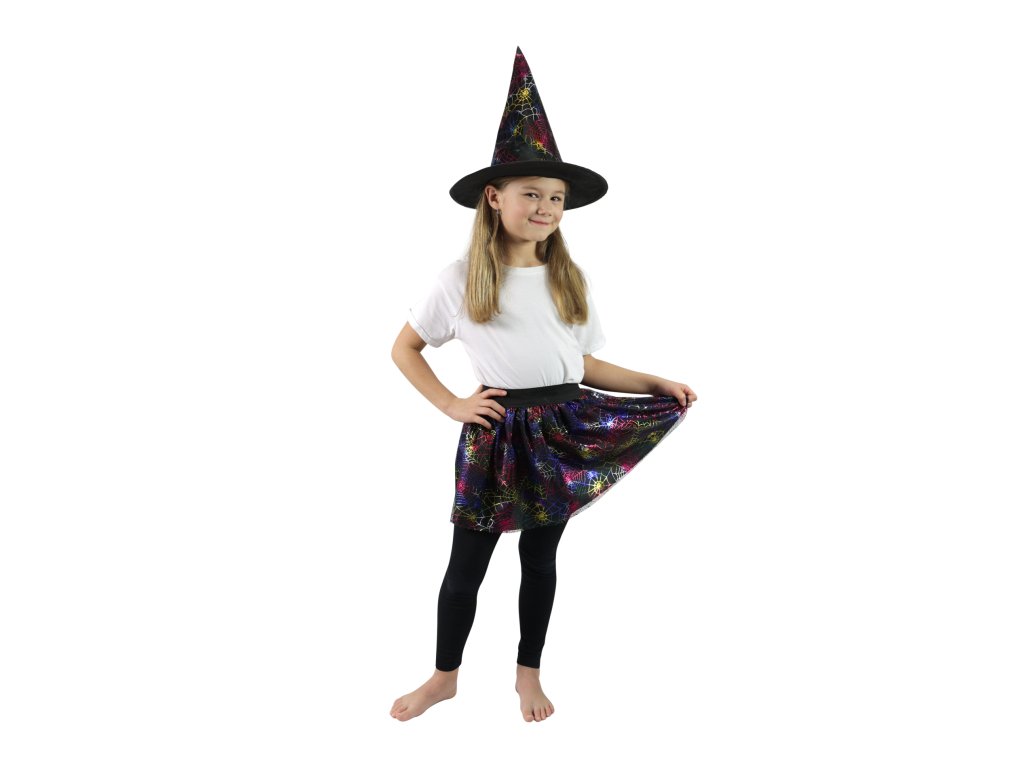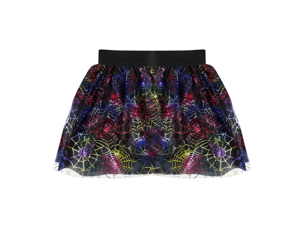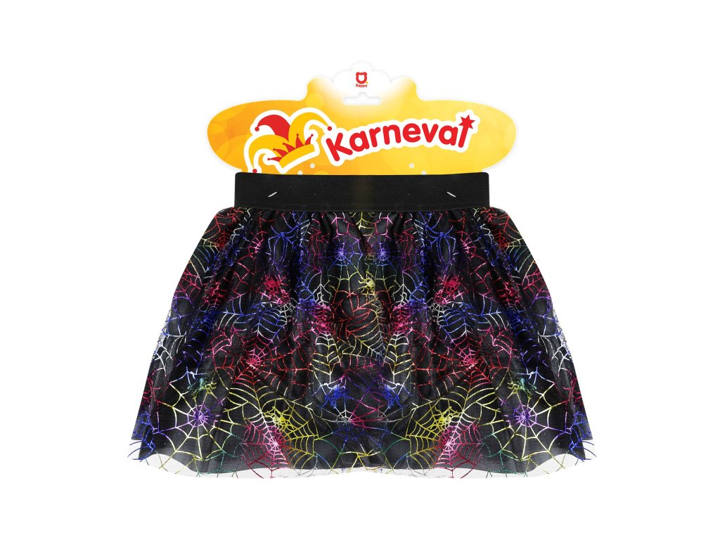 Sukně tutu pro všechny malé parádnice čarodějnice! Sukýnka má černou spodničku, překrytou tylem potištěným barevnými pavučinkami. Je určena pro holčičky ve věkovém rozmezí 3-7 let. Délka sukně je 28 cm. Skvěle se hodí i na oslavu Halloweenu nebo karneval!