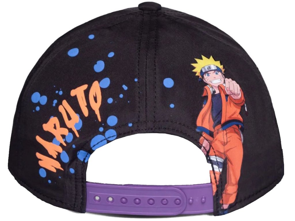 Černá baseballová kšiltovka vyvedená v grafice série Naruto. Tato čepice je vzadu otevřená a nastavitelná pro optimální a pohodlné nošení.