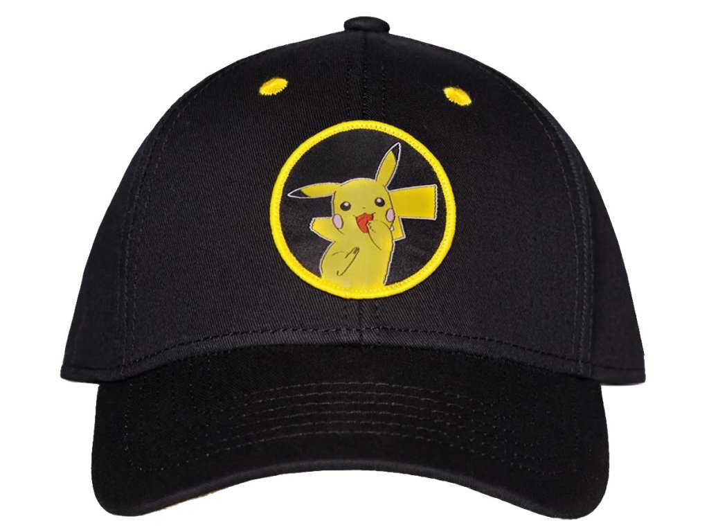 Hravý duch Pikachu s touto cool nastavitelnou černou kšiltovkou s poutavými žlutými detaily. Přední strana obsahuje grafiku tkané nášivky Pikachu, zatímco zadní strana má potisk jeho karty s hodnotou #25 ve vysokém rozlišení. Vzadu otevřená a nastavitelná kšiltovka pro optimální přizpůsobení na každou hlavu správného fanouška a lovce Pokémonů.