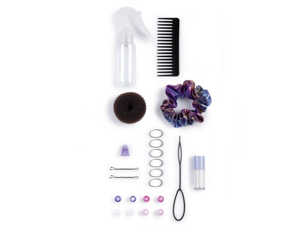 Česací hlava pro vytváření trendy účesů. S magickou funkcí, použij přiložený štěteček na rty namočený do studené vody a rty se krásně vybarví. Obsahuje 23 ks doplňků, které můžeš uschovat v tajné skrýši v podstavci hlavy. Vybaveno přísavkami na spodní části podstavce pro lepší stabilitu. Výška hlavy 26 cm.