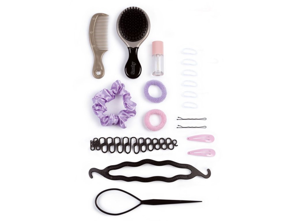 Česací hlava pro vytváření trendy účesů. S magickou funkcí, použij přiložený štěteček na rty namočený do studené vody a rty se krásně vybarví. Obsahuje 19 ks doplňků, které můžeš uschovat v tajné skrýši v podstavci hlavy. Vybaveno přísavkami na spodní části podstavce pro lepší stabilitu. Výška hlavy 26 cm.