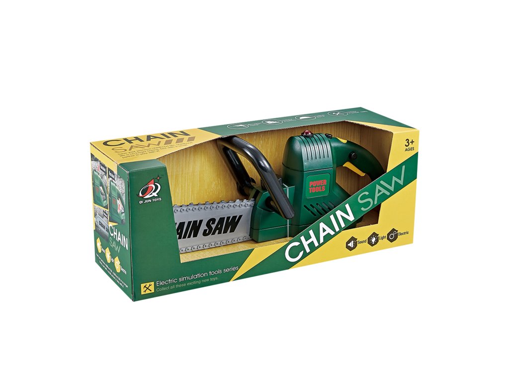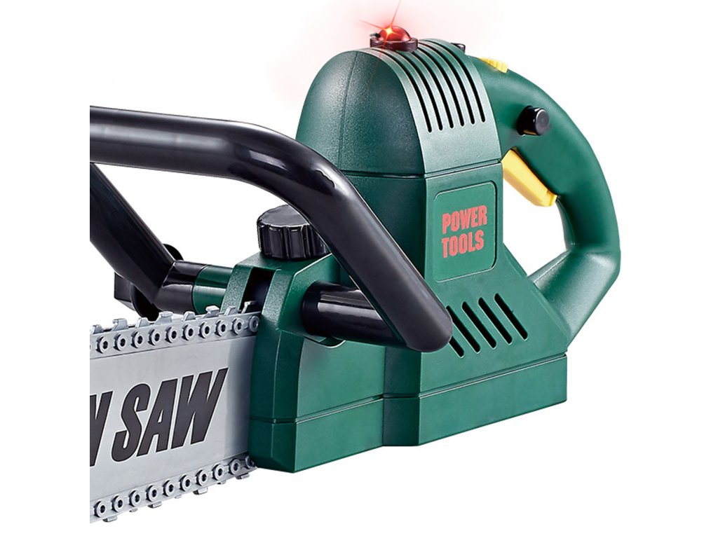 Tato motorová pila zajisté potěší všechny kluky, a to nejen z toho důvodu, že působí jako opravdová. Po zmáčknutí tlačítka vydává zvuk, rozsvítí se světýlko a řetěz se začne točit jako u skutečné pily. Funguje na 3x1.5V AA baterie, které nejsou součástí balení. Délka výrobku je cca 40 cm.