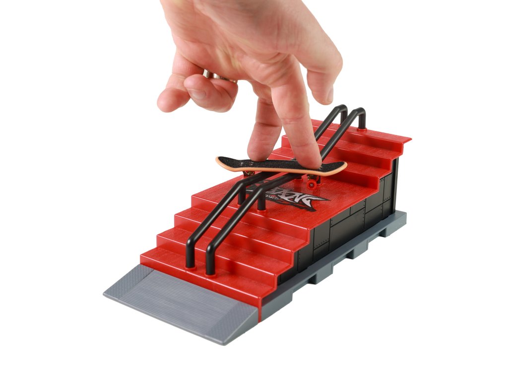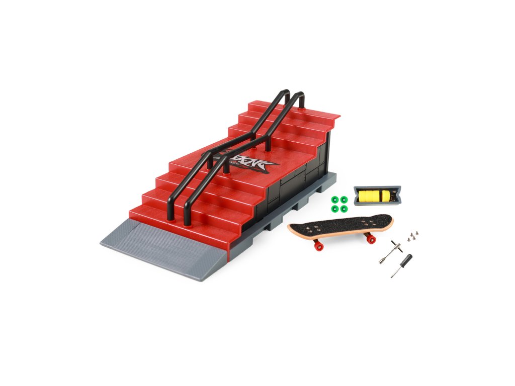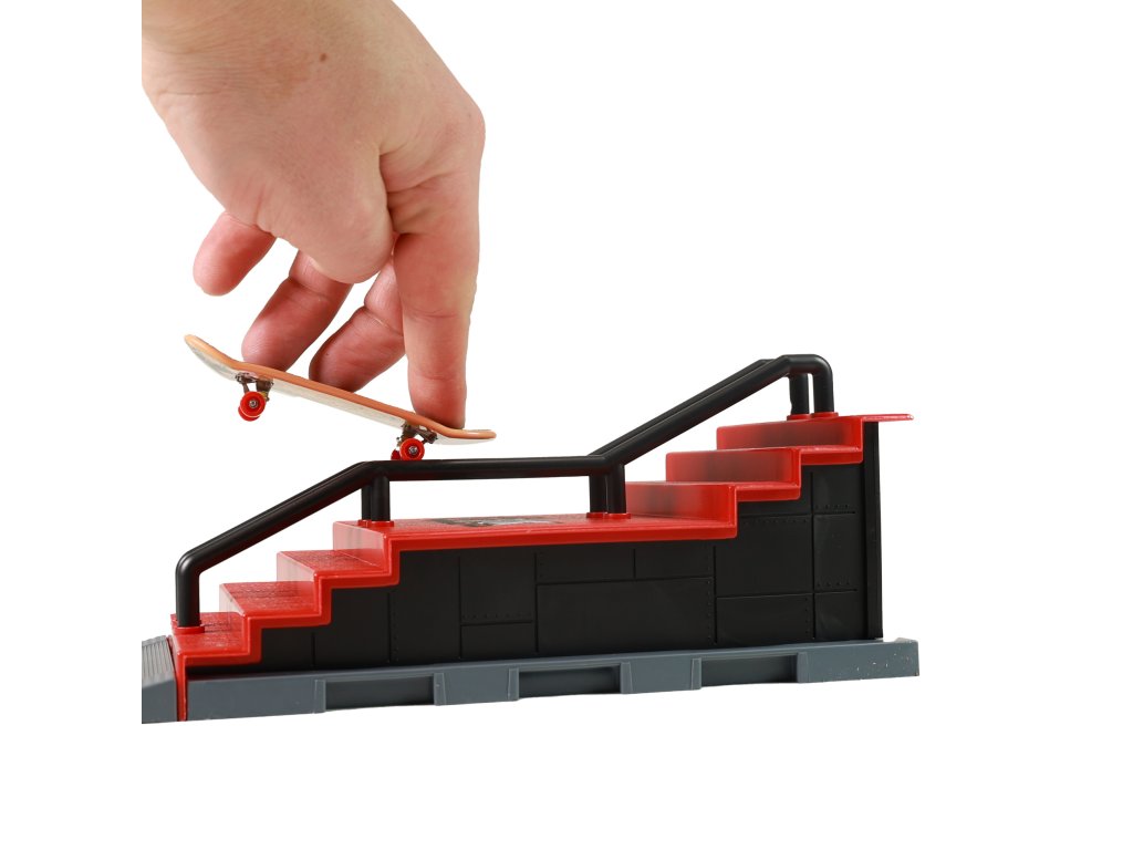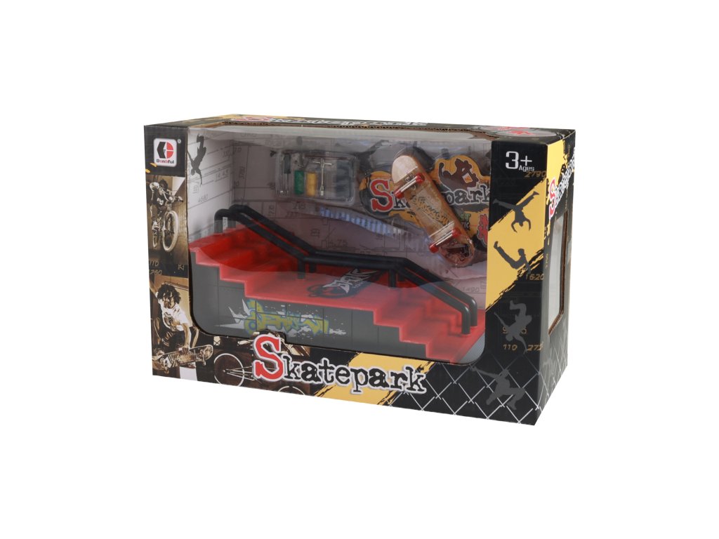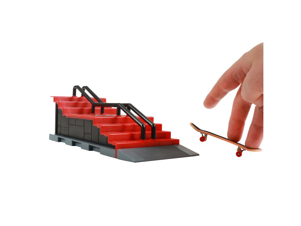 Vlastní skatepark se schodištěm a zábradlím, tak to je paráda! Učte se nové triky s figerboardem. Součástí balení je 1 skateboard/fingerboard šroubovací s příslušenstvím.