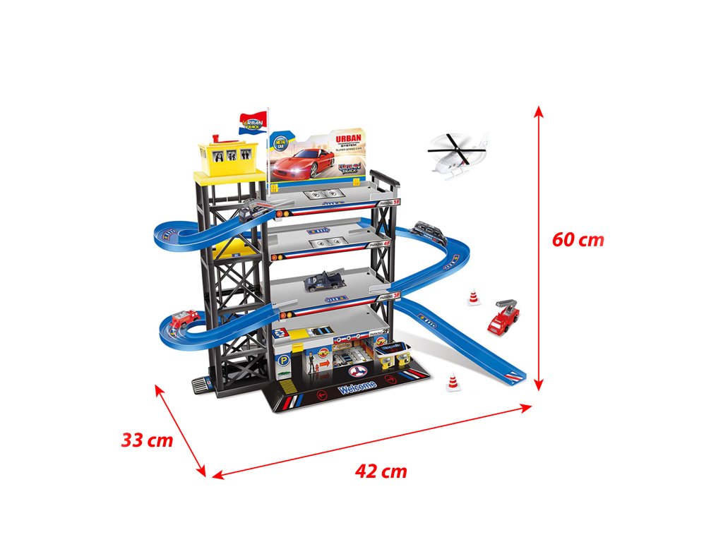 Teď už budeš mít všechna svá auta pohromadě! Sada obsahuje garáž se 4 podlažími, 1 helikoptéru a 3 autíčka. Nelze vybrat konkrétní druhy. Vhodné pro děti od 4 let. Rozměr garáže po sestavení je 42 x 60 x 33 cm. Velikost autíček je cca 7 - 8 cm.