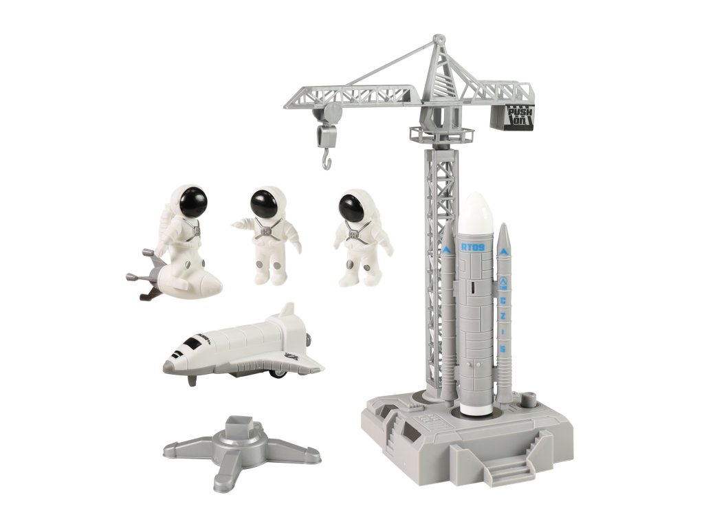 Vesmírná sada figurek s jeřábem a odpalovací plošinou
