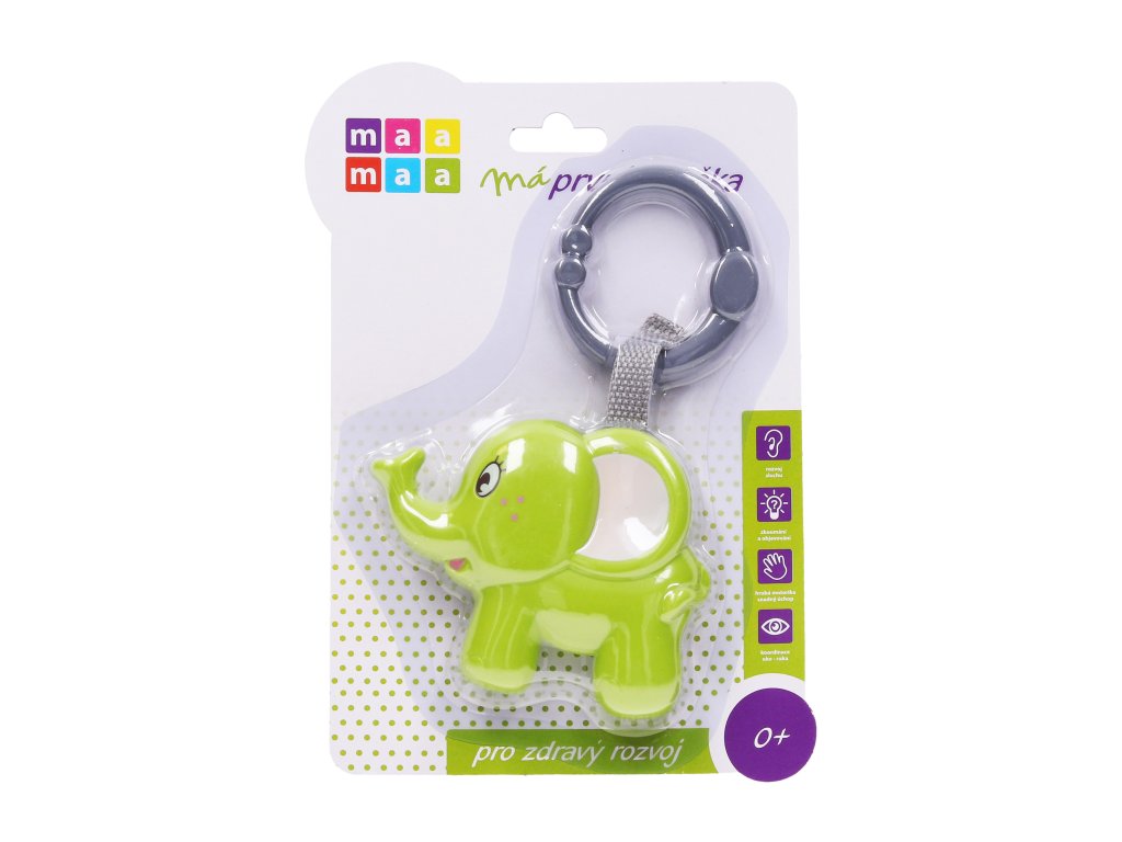 Chrastítko slon. Rozměry 14,5x3x21,5 cm.