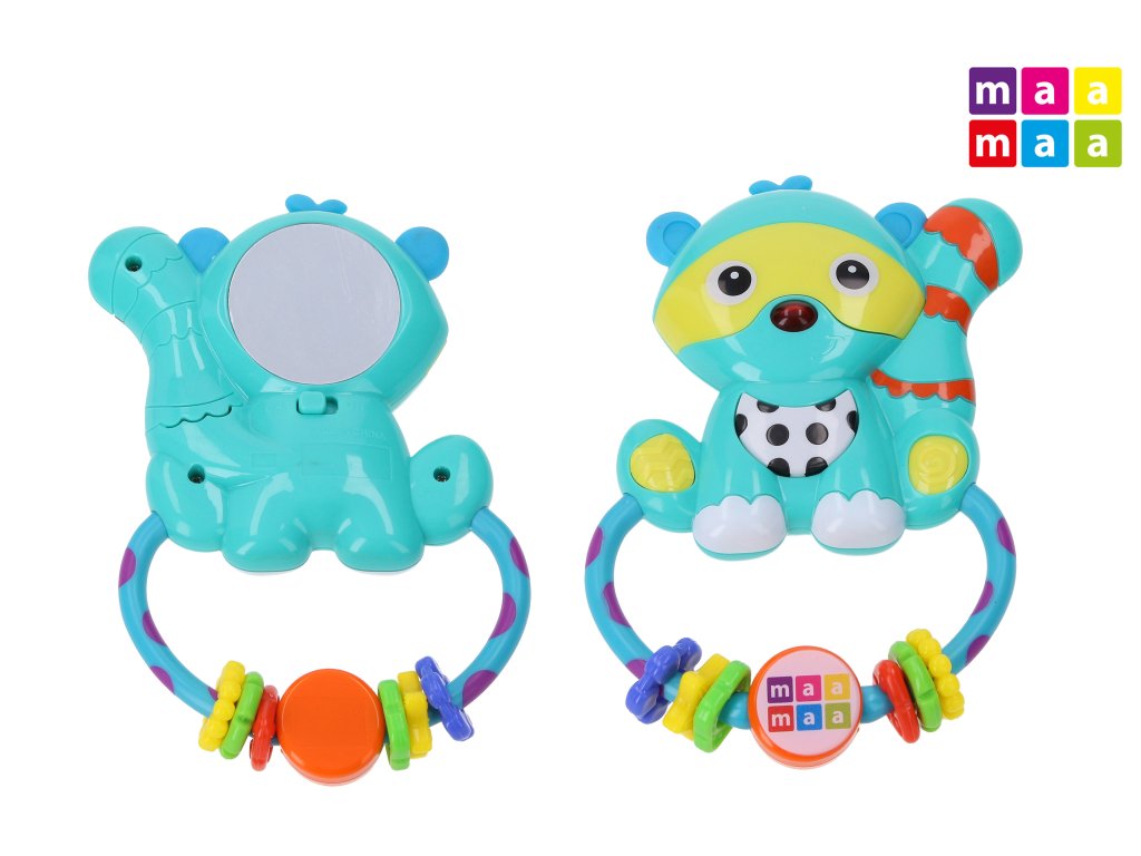 Medvídek mýval. Délka 17 cm. Vydává světelné a zvukové efekty.