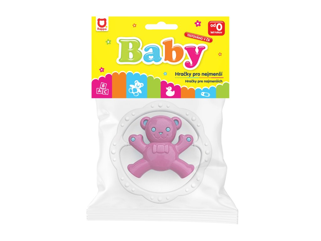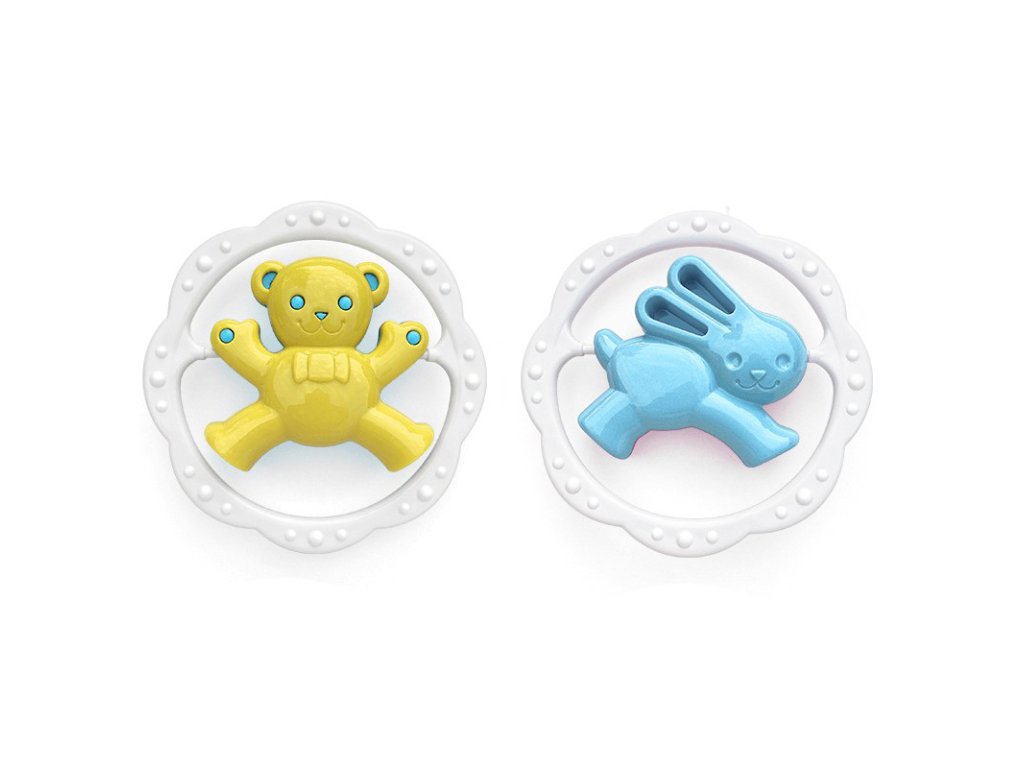 Pestrobarevné chrastítko kruh medvěd nebo zajíc. Rozvíjí motorické a zrakové dovednosti dítěte. Mix barev, nelze vybrat konkrétní druh ani barvu, dodáváme dle skladové dostupnosti.