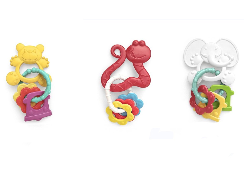 Veselé barevné chrastítko/kousátko se dvěmi plastovými přívěšky je určeno pro ty nejmenší. Tento praktický kousek navíc rozvíjí motorické a zrakové dovednosti děťátka. Mix barev, nelze vybrat konkrétní druh ani barvu, dodáváme dle skladové dostupnosti.
