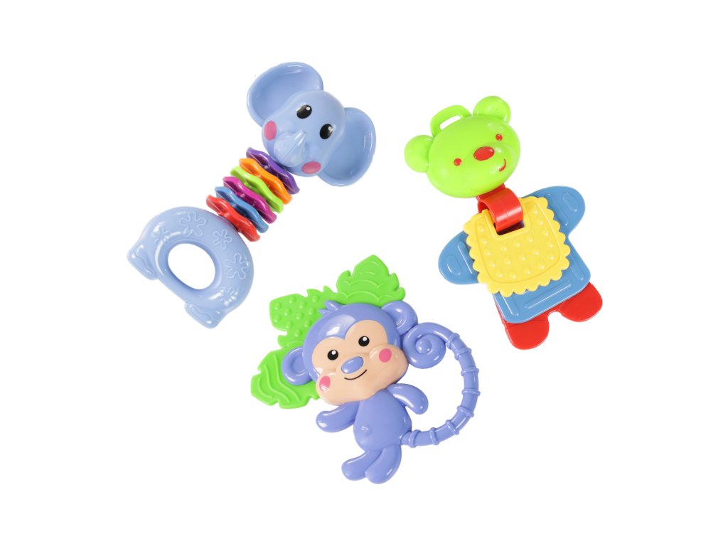 Rádi byste pořídili vašemu miminku hračku, kterou si zamiluje? Sada těchto veselých chrastítek je určena právě pro něj! Každé dítě má rádo pestré hračky, které vydávají zvuky a snadno se uchopí. S těmito roztomilými chrastítky zažije děťátko mnoho legrace a navíc si přitom rozvíjí motorické a zrakové schopnosti.