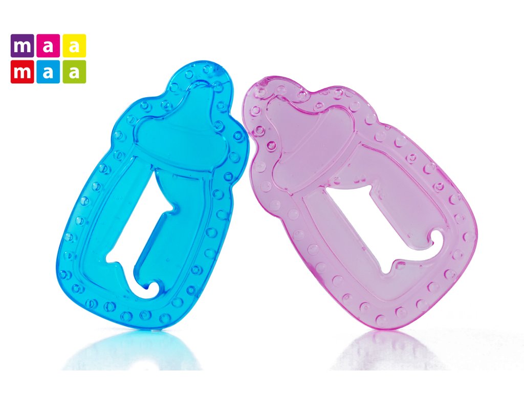 Chladící kousátko ve tvaru láhve je dodáváno ve dvou barevných provedeních - modrá a růžová. Kousátko je vyrobeno z měkkého materiálu, je plněný nezávadným gelem. Skvělá stimulace bolavých dásní.