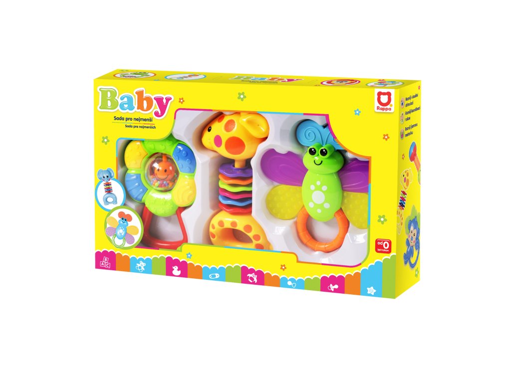 Rádi byste pořídili vašemu miminku hračku, kterou si zamiluje? Sada těchto veselých chrastítek je určena právě pro něj! Každé dítě má rádo pestré hračky, které vydávají zvuky a snadno se uchopí. S těmito roztomilými chrastítky zažije děťátko mnoho legrace a navíc si přitom rozvíjí motorické a zrakové schopnosti.