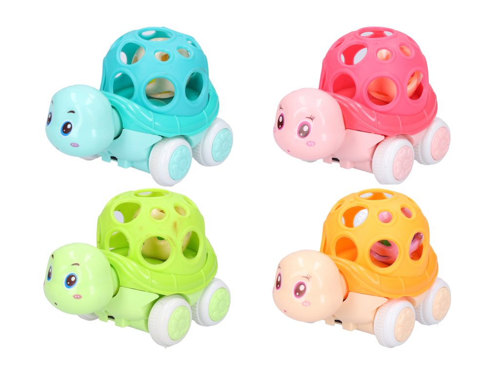Želva chrastítko plastová. Velikost 11 cm. Na setrvačník. 12 ks display box. 4 varianty - modrá, oranžová, zelená, růžová.