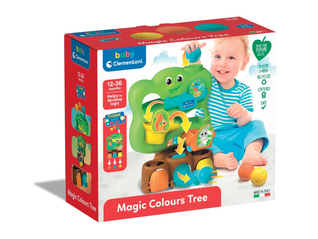 Zábavný strom se spoustou skluzavek, koulí a dvířek, které pomáhají malým dětem rozvíjet logické myšlení, zdokonalovat manuální koordinaci a porozumět vztahu příčina-následek. Tři koule, každá jiné velikosti, spadnou do kmene stromu a jako kouzlem skončí za dveřmi stejné barvy. Trénuje manuální dovednosti (uchopení míčku, otevírání dveří), koordinaci ruka-oko (vkládání míčků otvorem) a logické myšlení. Živý, barevný a zábavný design díky stromu, který se spolu se svými ptačími kamarády promění v legrační postavičku. Rozměry balení: 24 x 27 x 11,5 cm Věk: 12m+