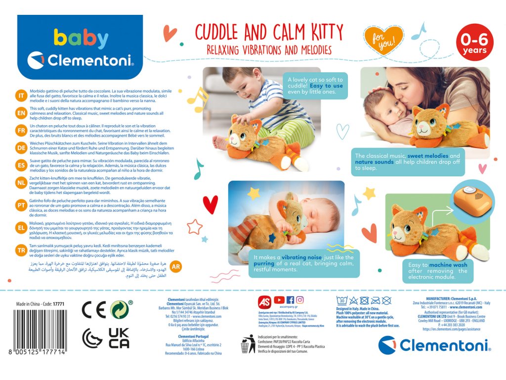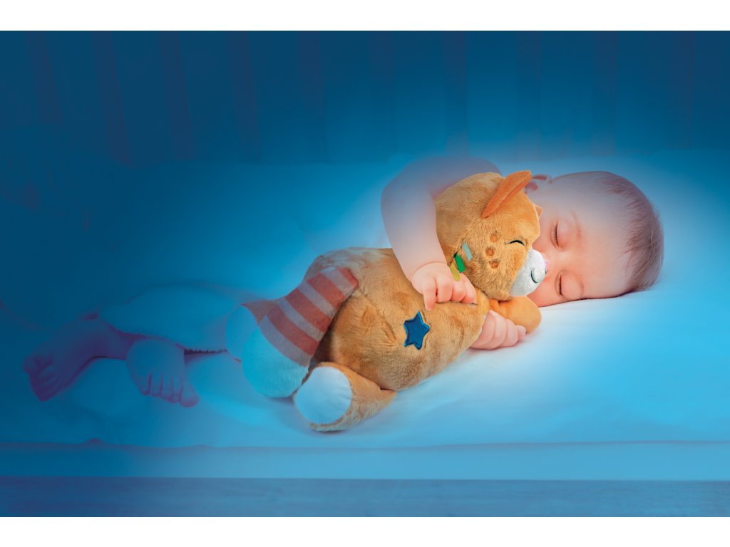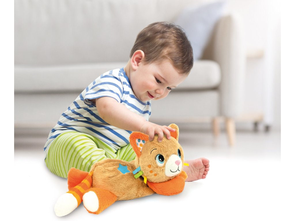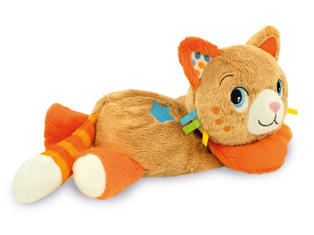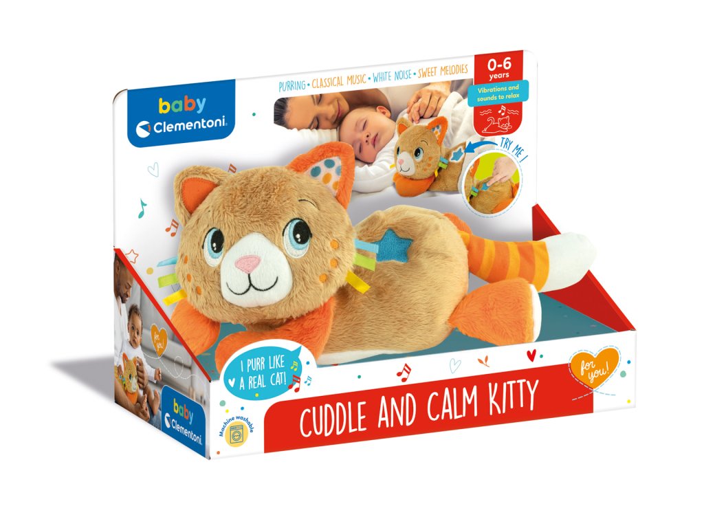 Měkoučké plyšové kotě, ideální pro uklidnění dětí a jejich přípravu do postele. Hračka má speciální vibraci, která napodobuje vrnění kočky, spolu se sladkými melodiemi dítě uklidňuje a pomáhá mu usnout. Kočka také hraje bílý šum, který dítě uklidňuje a pomáhá mu relaxovat. Plyšák lze po vyjmutí jeho elektronického modulu prát v pračce. Balení: 30x20x15cm Věk:0+