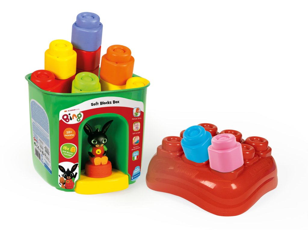 Zábavný Bing! Kyblík obsahující spoustu měkkých bloků Clemmy navržených tak, aby si malé děti mohly hrát v naprostém bezpečí. Balíček také obsahuje postavu Binga pro vymýšlení fantastických příběhů. Měkké bloky Clemmy jsou ideální pro smyslové zkoumání a stimulují manuální dovednosti a motorickou koordinaci. Měkké, omyvatelné a netoxické bloky Clemmy jsou speciálně navrženy pro děti, aby si s nimi mohly hrát v naprostém bezpečí. Rozměry balení: 18,5x 24 x 17 cm. Věk: 18m+