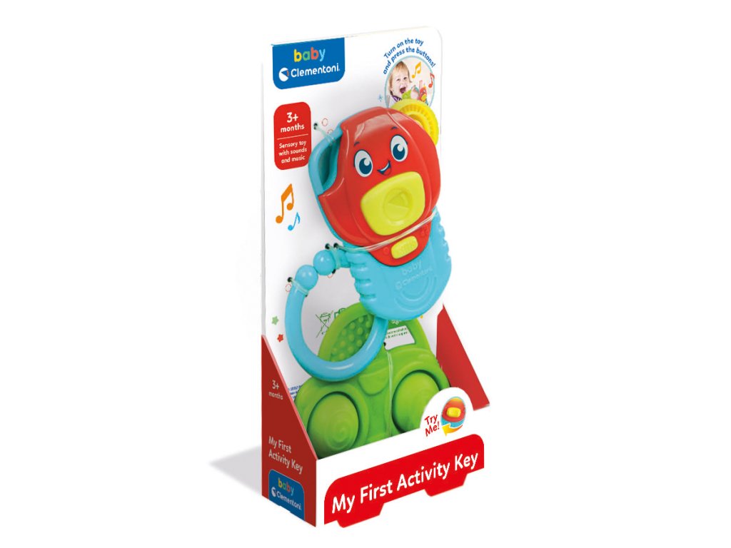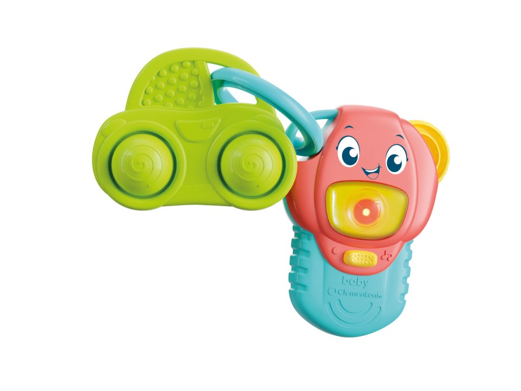 Elektronický interaktivní klíč a jeho žvýkací kroužek na klíče. Klíč podporuje sluchové vnímání dítěte hudbou a zvuky a zapojuje dítě prostřednictvím napodobovací hry. Klíčenka z měkkého materiálu rozvíjí jemnou motoriku a smyslové vnímání dítěte. Objevte všechny imitace hraček z řady Baby Clementoni. Elektronická interaktivní hračka určená pro rozvoj dítěte v prvních letech. Baterie 3xAG13. Rozměr balení: 10x20x4. Věk 3m+