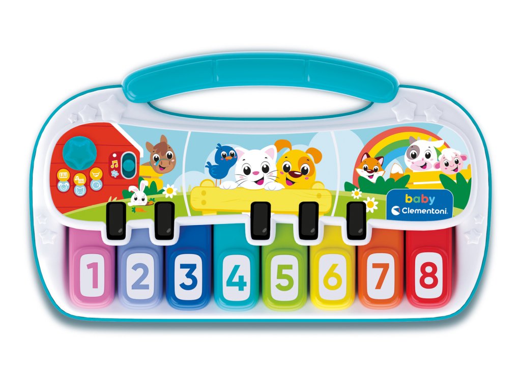 Zábavné a barevné piano se zvířátky doprovází vaše dítě při snadném a intuitivním objevování hudby díky 3 herním režimům. V hudebním režimu může dítě skládat melodie volně nebo s dětskými partiturami. V režimu zpěv podporují zpívané zábavné hudební noty vztah mezi notou a hlasem. Ve vzdělávacím režimu učí čísla a barvy s veselými písničkami a zábavnými říkankami. S praktickou rukojetí, abyste měli hudbu vždy po ruce. Podporuje rozvoj jemné motoriky, smyslových schopností a řeči. Baterie 2xAAA. Rozměr balení: 29x22x5,5 cm. Věk 18m+