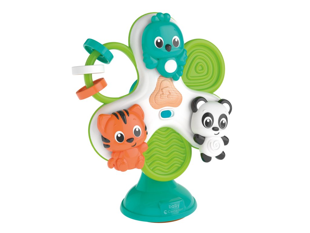 Zábavný kolotoč se zvířátky, který pobaví batolata na vysoké židli a během jídla. Tři zábavná zvířátka se 3 kroužky a malou vrtulí k otáčení. Díky přísavce pod podstavcem lze hračku praktickým a snadným způsobem připevnit ke stolu vysoké židle. Obsahuje spoustu melodií a vtipných zvuků, které pobaví batolata a stimulují jejich smysly a koordinaci rukou a očí. Baterie 2xAAA. Rozměr balení: 18x25x10 cm. Věk 6m+