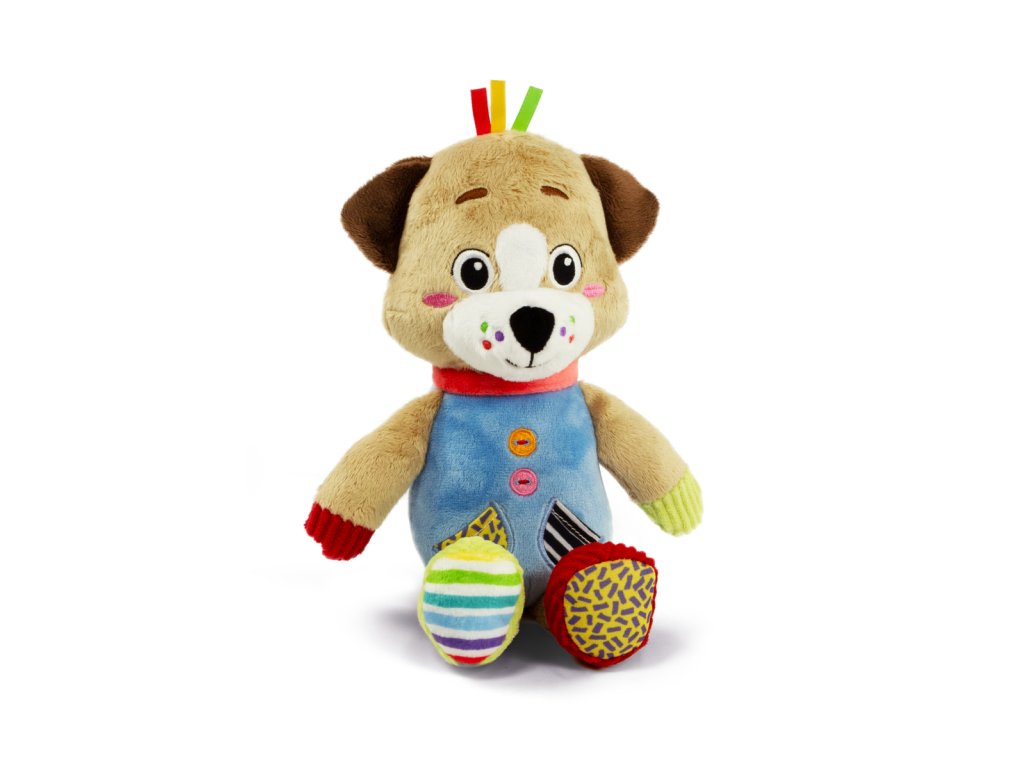 Ultra měkký plyšový pes vhodný pro malé děti na hraní v atmosféře plné něhy. Plyšová hračka je vyrobena z různých materiálů napomáhajících multismyslové stimulaci a rozvoji hmatového vnímání v prvních fázích života. Plyšová hračka má malé kousátko, připravené speciálně pro kousání nejmenších uživatelů hračky.. Lze prát v pračce. Rozměr balení: 16x22,5x8,5 cm. Věk 0m+