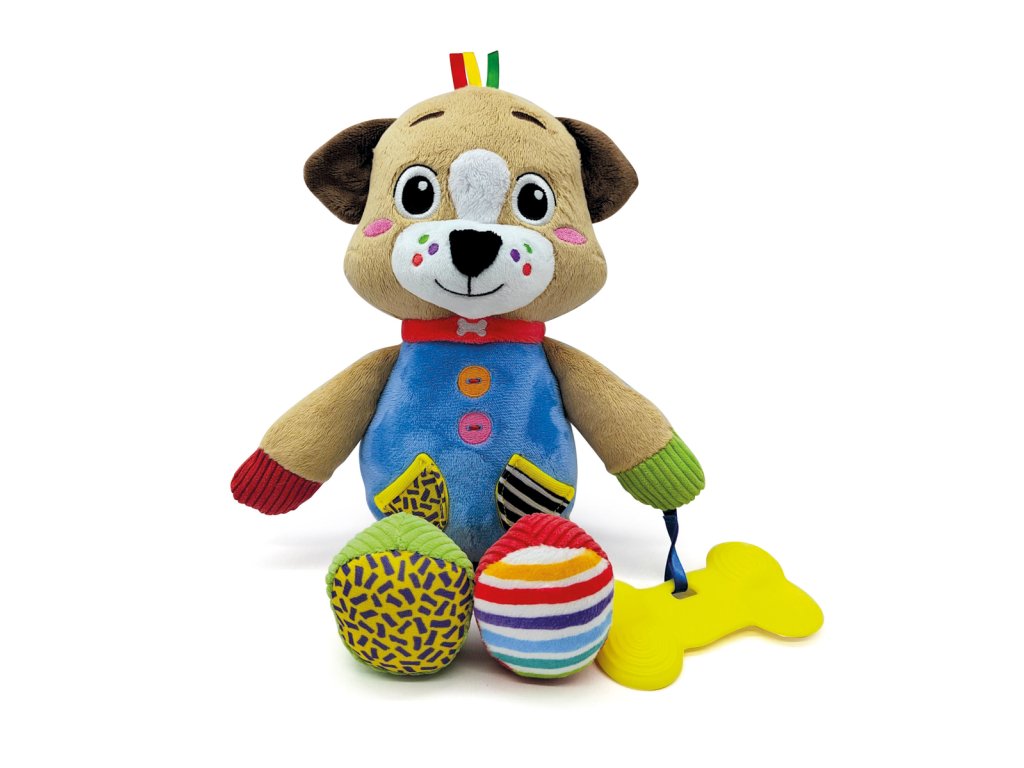 Ultra měkký plyšový pes vhodný pro malé děti na hraní v atmosféře plné něhy! Tento roztomilý pejsek je dodáván s měkkou přikrývkou navrženou tak, aby absorbovala matčinu vůni a uklidnila dítě během fáze odpoutání. Dárková krabička obsahující plyšovou hračku je navržena a ilustrována živými barvami a lze ji také použít jako psí boudu. Plyšová hračka je vybavena žvýkacím doplňkem určeným pro fázi chrupu malých dětí. Lze prát v pračce. Rozměry balení: 30x10,5x22cm. Věk: 0+