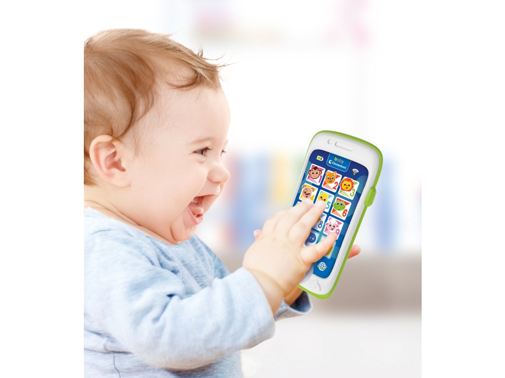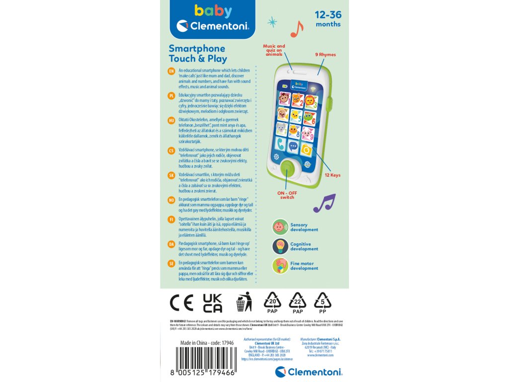 Smartphone touch and play je elektronická imitace s dotykovou membránou a 12 dotykových tlačítek se zvířecími hlasy, zvuky a hudba. Věk: 12m+