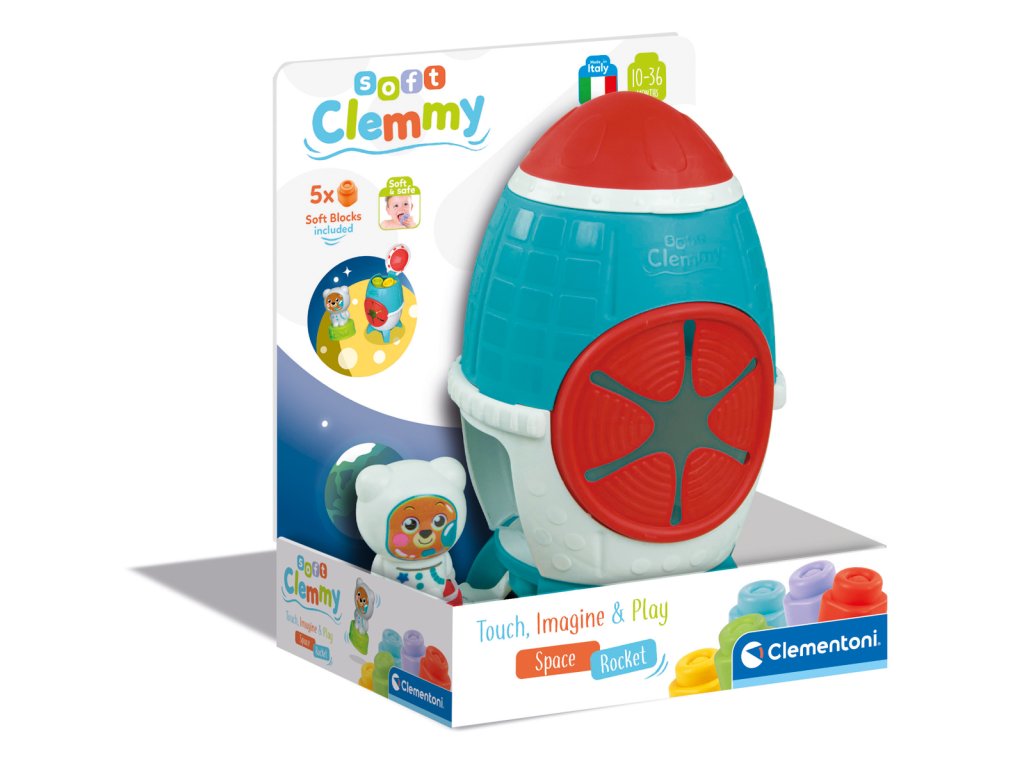 Nová vesmírná raketa Clemmy přichází s roztomilou figurkou ´´astronauta´´. Plno aktivit s bloky pro tvoření, skládání a představování spousty vesmírných dobrodružství. Vložte bloky hmatovým otvorem z měkkého plastu a vyjměte je otevřením krytu. Astronaut může být naskládán na bloky a vložen do rakety, připraven k odletu a prozkoumání měkkého vesmíru Clemmy! Měkké bloky Clemmy a raketa s mnoha různými texturami stimulují hmat dítěte, rozvíjejí manuální dovednosti a zlepšují koordinaci rukou a očí. Rozměry balení: 21x15x27,5cm. Věk: 6m+