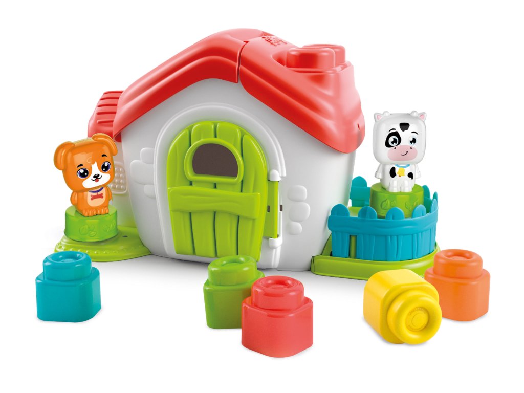 Clemmy baby - Senzorický kyblík domeček s otevírací střechou a kostičkami