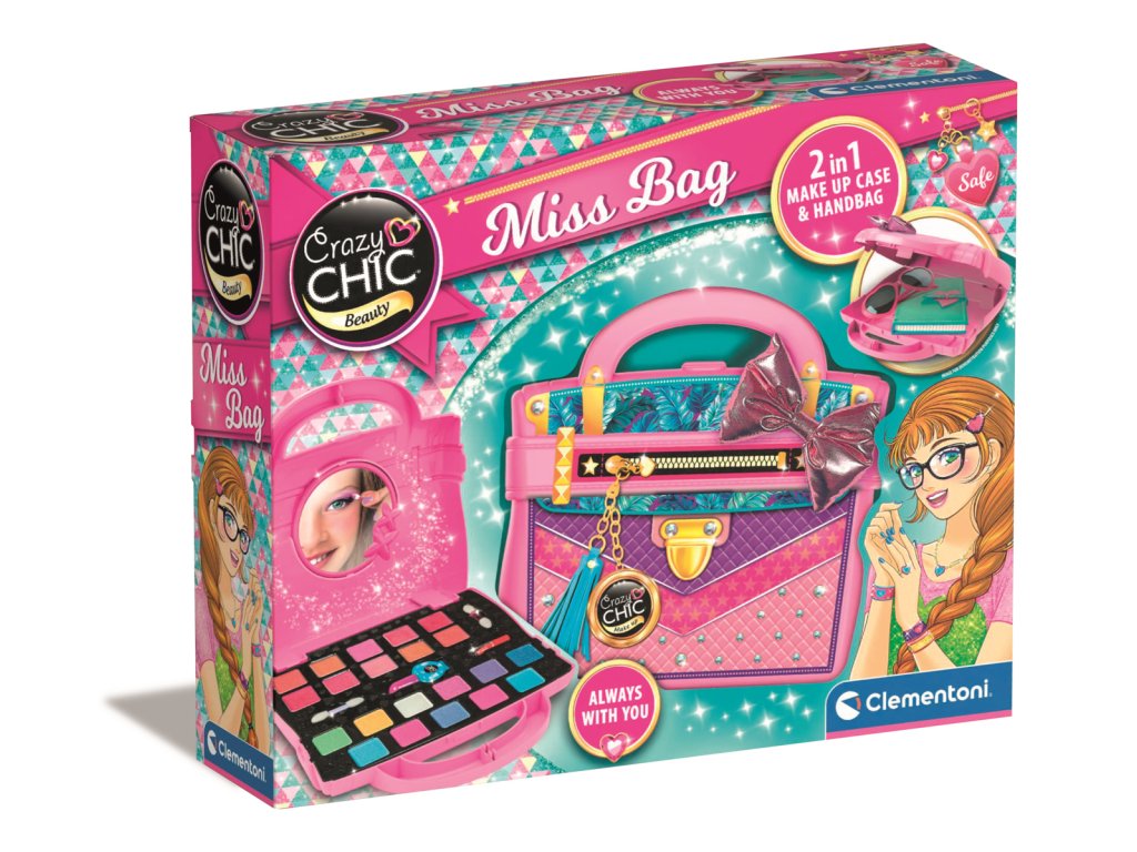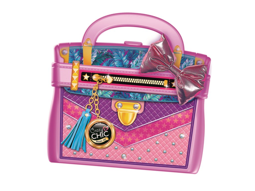 Módní taška, která v sobě ukrývá tajemství krásy každé Crazy Girl! Obsahuje spoustu triků, jak se pobavit a vytvořit dokonalý make-up pro každou příležitost. Speciální kufřík má atraktivní design se skutečně šik texturou a rafinovanou super glam látkovou stuhou! Malé holčičky mohou experimentovat se spoustou různých make-upů díky širokému sortimentu příslušenství: 9 lesků na rty, 11 očních stínů, 1 rtěnka, 1 lak na nehty a 2 aplikátory. Praktické odnímatelné zrcátko lze nosit kdekoli a kdykoli zkontrolovat make-up. Hra, která stimuluje kreativitu dívek na poli krásy, a to v naprostém bezpečí. Balení: 42,5x34,5x10,5cm. Věk: 6+