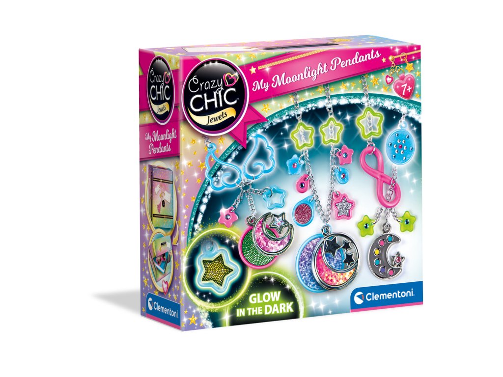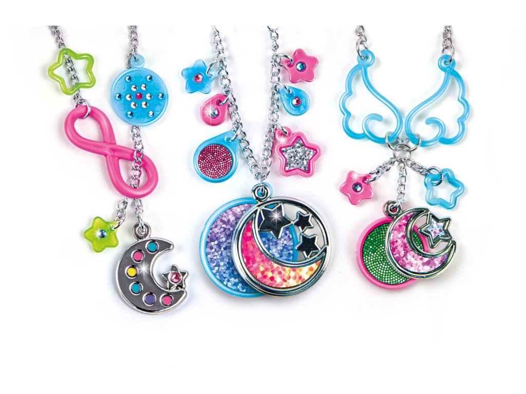 Exkluzivní sada pro vytváření náramků a náhrdelníků s fantastickými kouzly Crazy Stars a Crazy Moon, které svítí ve tmě! Sada obsahuje: hliníkové náhrdelníky a prsteny, přívěsky z kovového a barevného plastu ve tvaru měsíce a hvězd, holografické nálepky a držák na doplňky. Zábavná a kreativní hračka pro vytváření trendových doplňků! Rozměry balení: 18 x 18 x 6 cm. Věk: 7+