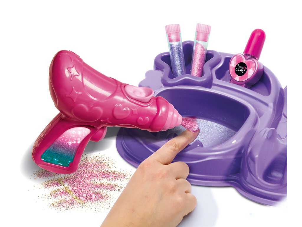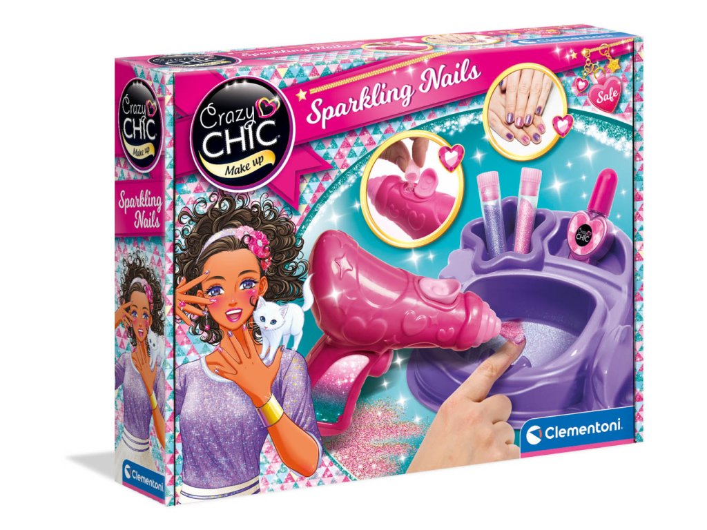 Tato originální sada Crazy CHIC – Nehtové studio Sparkling obsahuje vše, co potřebujete pro dokonalou manikúru a zdobené nehty! Strojek na aplikaci třpytek, fantastický odlupovací lak na nehty bez obsahu acetonu a spoustu barevných třpytek na nehty. Hra stimuluje kreativitu a představivost. Rozměr balení: 29 x 31,5 x 6 cm. Věk: 7+. Baterie: 2xAA (nejsou součástí balení).