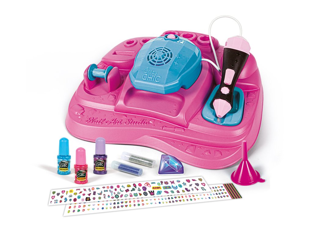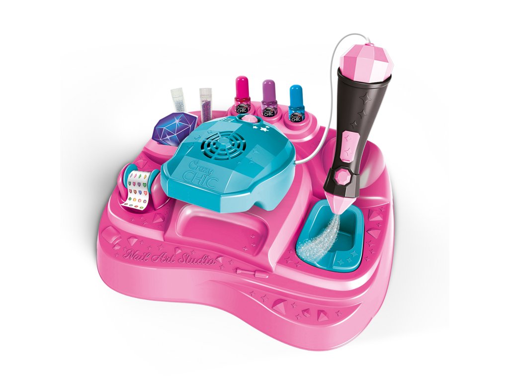 Zcela nová a inovativní konzole s moderním a ergonomickým designem pro super nehtáře budoucnosti! Stroje na stříkání třpytek a sušení laku na nehty zaručují skutečně trendy vzhled. Sada obsahuje laky na nehty Crazy Chic, samolepky na nehty a barevné třpytky pro super-glam dekorace! Kreativní, aktuální a originální hra na zdobení nehtů cool stylem jako skutečná Crazy Girl! Trendový koncept, který stimuluje kreativitu a manuální dovednosti u malých dívek. Rozměry balení: 45,1x7x31,1cm. Věkl: 8+