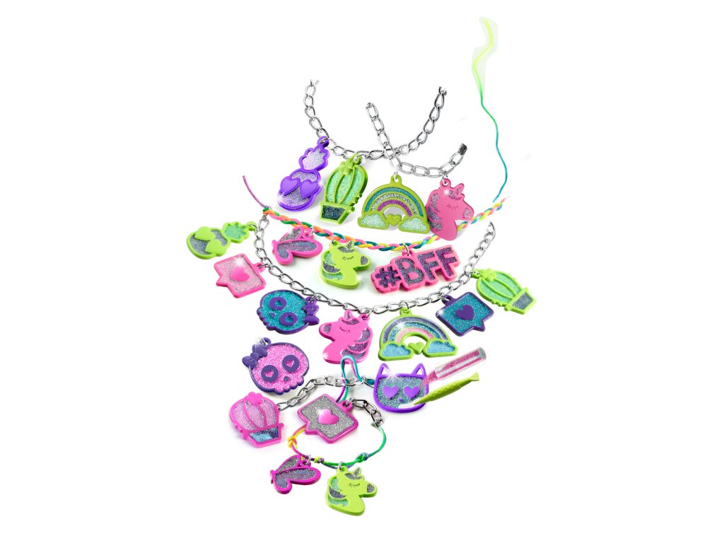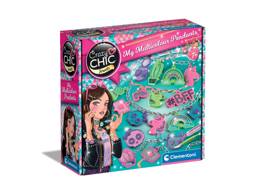 Nové šperky Crazy Chic jsou explozí třpytu a kouzla s vysoce trendy stylem. Sada obsahuje kovové náhrdelníky a prsteny, atraktivní přívěsky v moderním stylu, různobarevnou šňůrku a barevné třpytky. Náhrdelníky a náramky s přizpůsobenými řešeními pro různé vzhledy, které jsou vždy trendy! Doplňky jsou navrženy tak, aby odrážely nejnovější trendy a vytvářely jedinečné šperky.Rozměry balení: 18x6x18cm. Věk: 7+