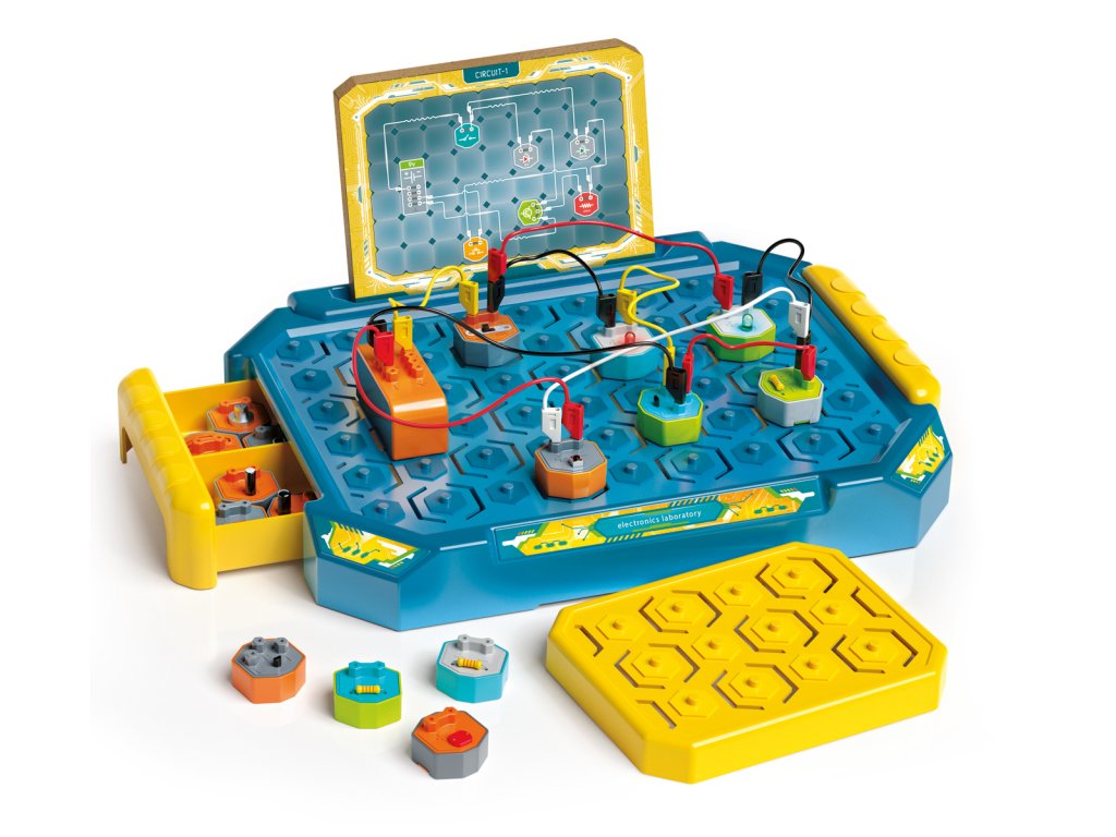 Cesta do světa elektřiny začíná s laboratoří na stavbu funkčních elektronických obvodů! S patentovanými moduly se vytváření elektrických obvodů promění ve skvělou zábavu! Preciznost správné montáže a kapacita funkčního obvodu pro autonomní učení se všem tajům elektroniky a zároveň zábavu. Poutavá hra, která stimuluje inteligenci dítěte při stavbě součástek a vytváření elektrických obvodů, které všechny fungují jinak. Kromě předmontovaných prvků má sada 18 modulů k sestavení a inovativní uzávěr, všechny založené na součástech italské výroby. Patentovaný montážní mechanismus, který je zaručeně originální. Elektronika rozsvítí světla a aktivuje senzory připojením modulů a vodičů naprosto bezpečným způsobem na speciálním pracovním stole. Obsahuje více než 20 elektrických obvodů s různou úrovní obtížnosti, 10 karet s dvěma tvářemi a podrobné materiály pro nalezení mnoha zdrojů inspirace. Rozměry balení: 45,1 x 31,1 x 7 cm. Věk: 8+