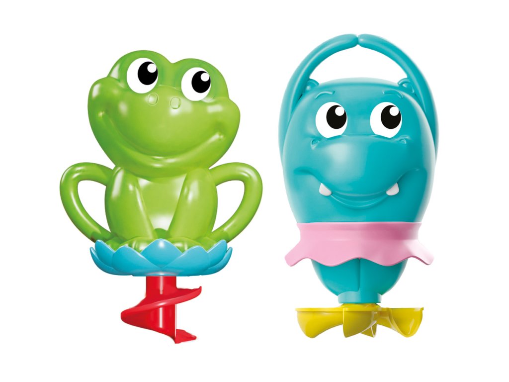 Dvě zábavné postavičky žáby a hrocha, snadno ovladatelné i pro batole. 2 milá zvířátka která můžete naplnit vodou a skvěle se s nimi bavit. Rozměry balení: 26 x 22 x 8 cm. Věk: 6m+