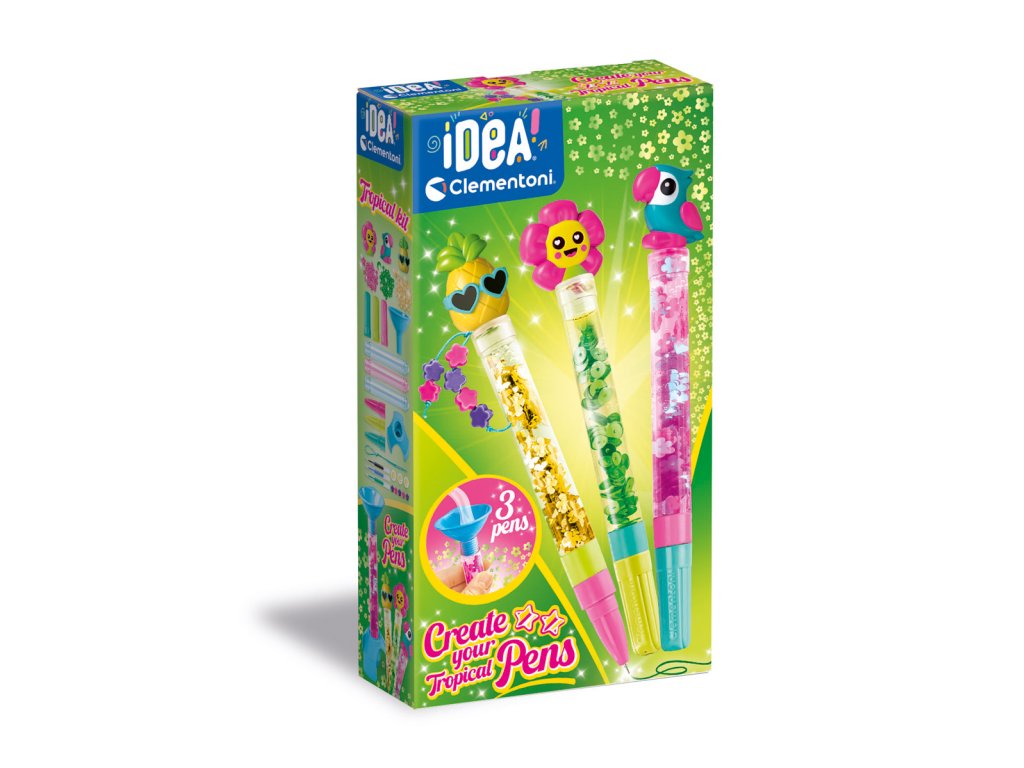 Originální a kreativní sada, pomocí které sestavíte 3 pera a přizpůsobíte je různými dekoracemi v tropickém stylu. Sada obsahuje: 3 pera, 4 různé barevné inkousty, další doplňky a všechny nástroje potřebné k výrobě. Sada umožňuje vytvářet a přizpůsobovat si pera pomocí spousty doplňků a dekorací. Rozměr balení: 10x18,5x4 cm. Věk 6+
