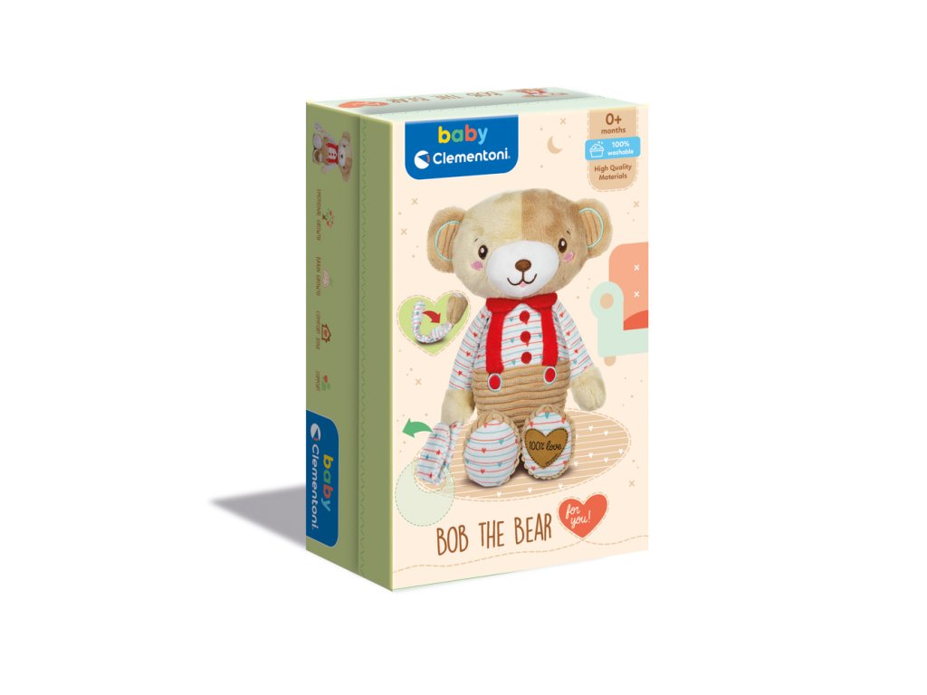 Něžný plyšový medvídek Bob se ihned stane nerozlučným kamarádem všech malých dětí. Medvídek je vyroben z různých textilních materiálů a textur a je navržen tak, aby zlepšil multisenzorickou stimulaci dítěte. Medvídek má praktické ouško, na které lze připevnit dudlík nebo kousátko (dudlík ani kousátko nejsou součástí výrobku). Krásná dárková krabička lze také použít k hraní s plyšovým medvídkem. Možné prát v pračce. Velikost plyšáka – 28 cm. Rozměr balení: 31,5 x 34,1 x 3,5 cm. Věk: 0+