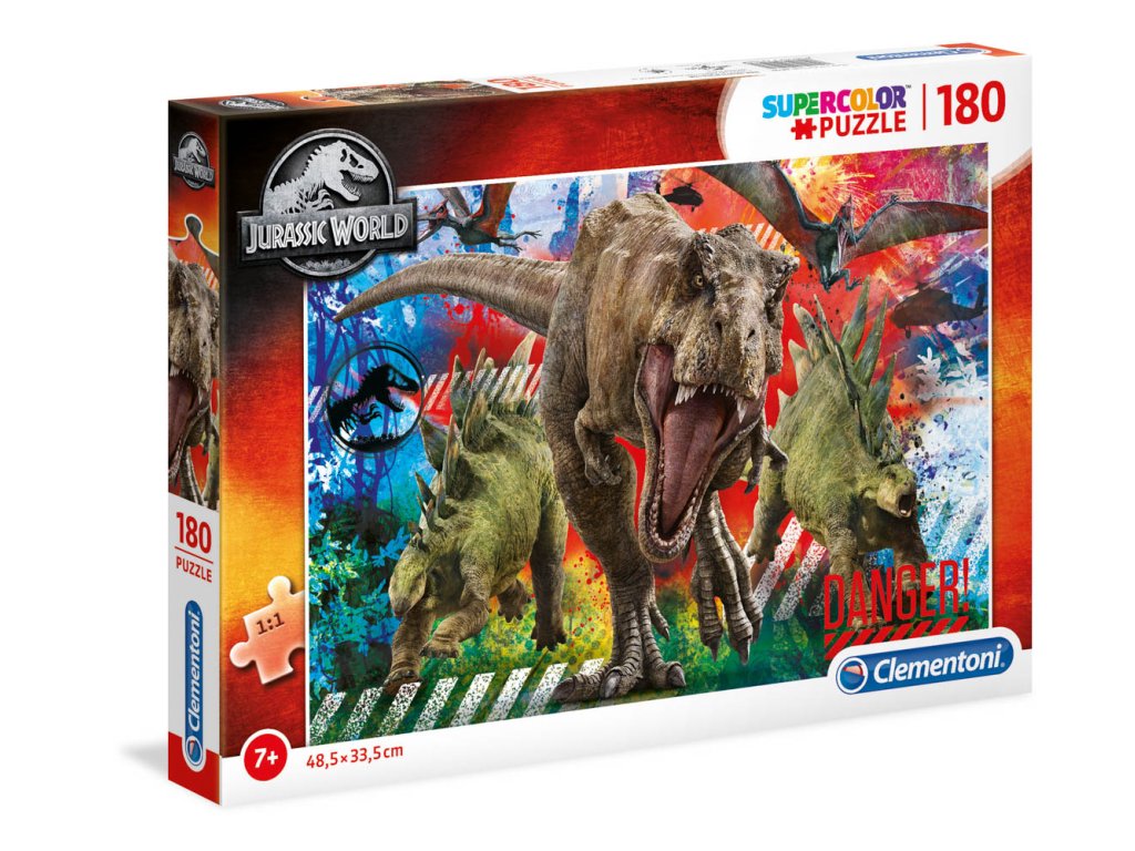 Puzzle Supercolor s motivem Jurského světa. Rozměr složeného puzzle 48,5 x 33,5 cm. Počet dílků 180. Rozměr balení: 24,9 x 34,3 x 3,5 cm. Věk: 7+