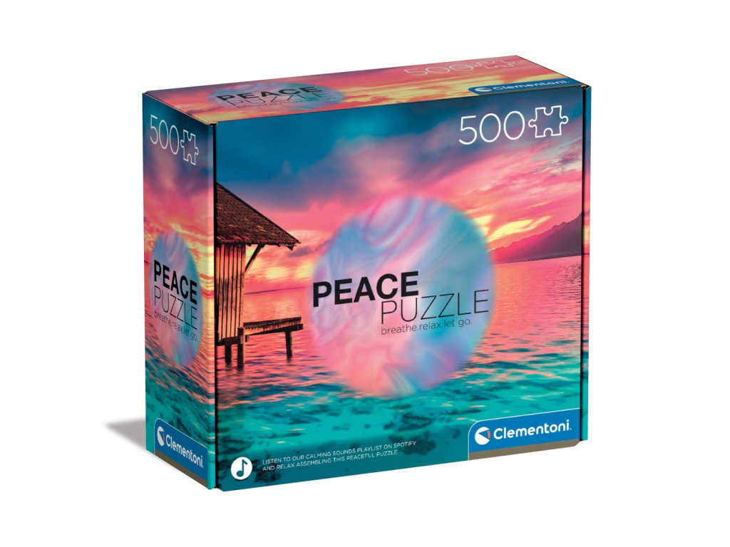 Skládání jako meditace. Uvolněte se, dýchejte, relaxujte... a skládejte. Řada Peace Puzzle od Clementoni nabízí dvojnásobný relax. Kombinuje totiž skládání puzzle a poslech hudby navozující pocit klidu a míru. Pečlivě vybrané obrázky překrásné přírody vyvedené v decentních barvách v kombinaci s příjemnou hudbou blahodárně působí na naše smysly. Puzzle obsahuje odkaz na originální playlist Spotify s relaxační hudbou a zvuky, vytvořený speciálně pro Clementoni Peace Puzzle.Rozměr balení: 18,2 x 16,3 x 7 cm Rozměr složeného puzzle: 49 x 36 cm.. Věk: 14+